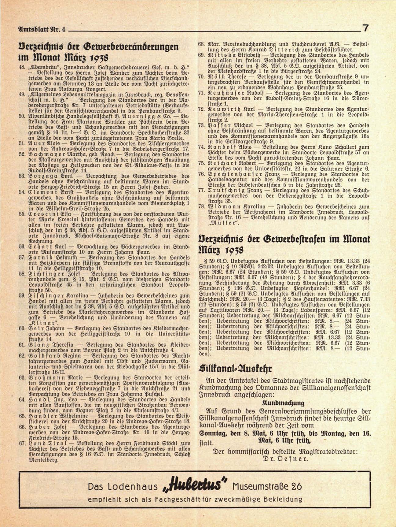49. „Allgemeines Lebensmittelmagazin in Innsbruck, reg. Genossenschaft m. b. H." — Verlegung des Standortes der in der Madersbergerstraße Nr. 7 unterhaltenen Betriebsstätte (Verkaufsstelle) für den Gemifchtwarenhandel in die Pembaurstraße 9.