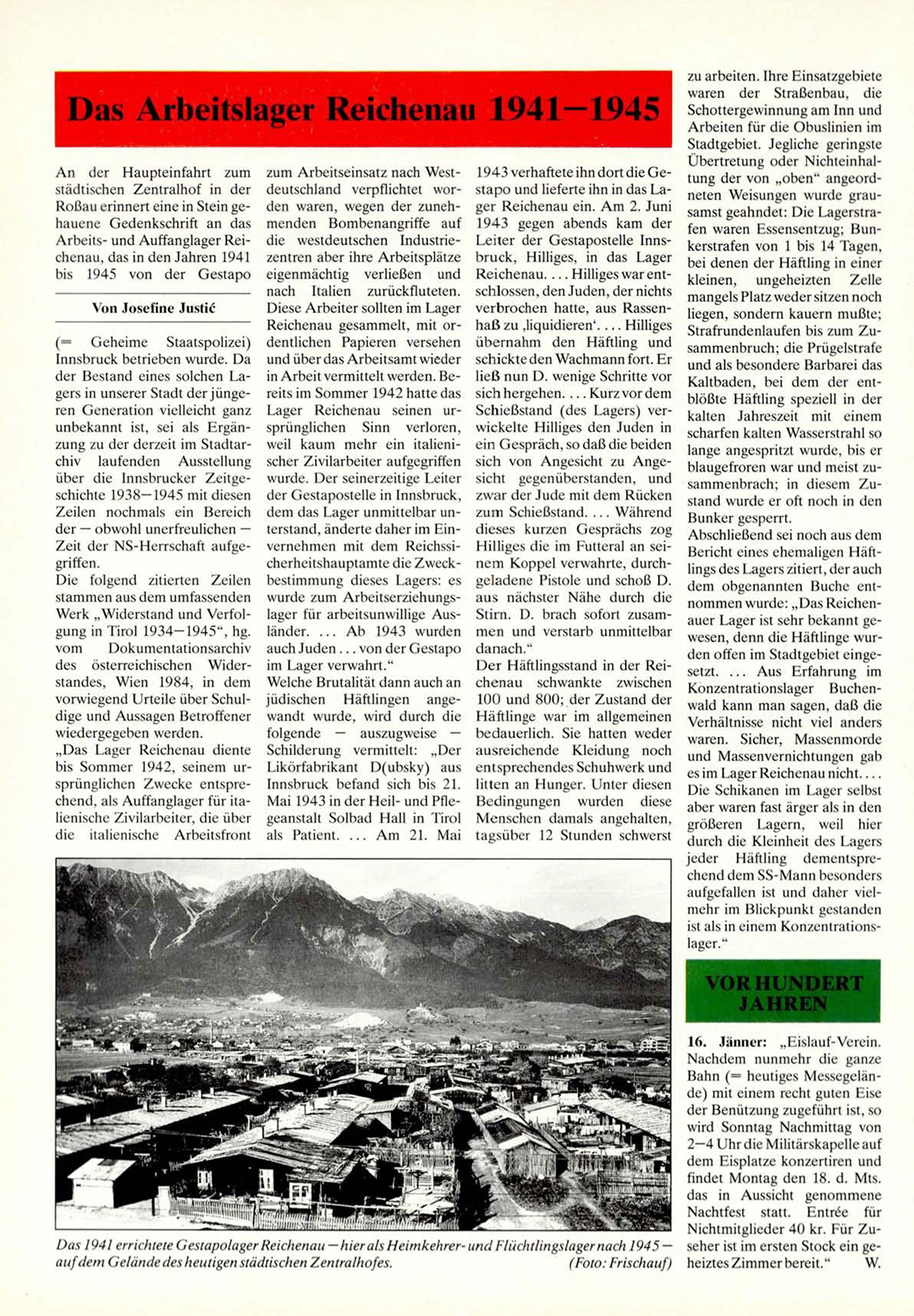 ü b e r die Innsbrucker Zeitge- wurde. Der seinerzeitige Leiter