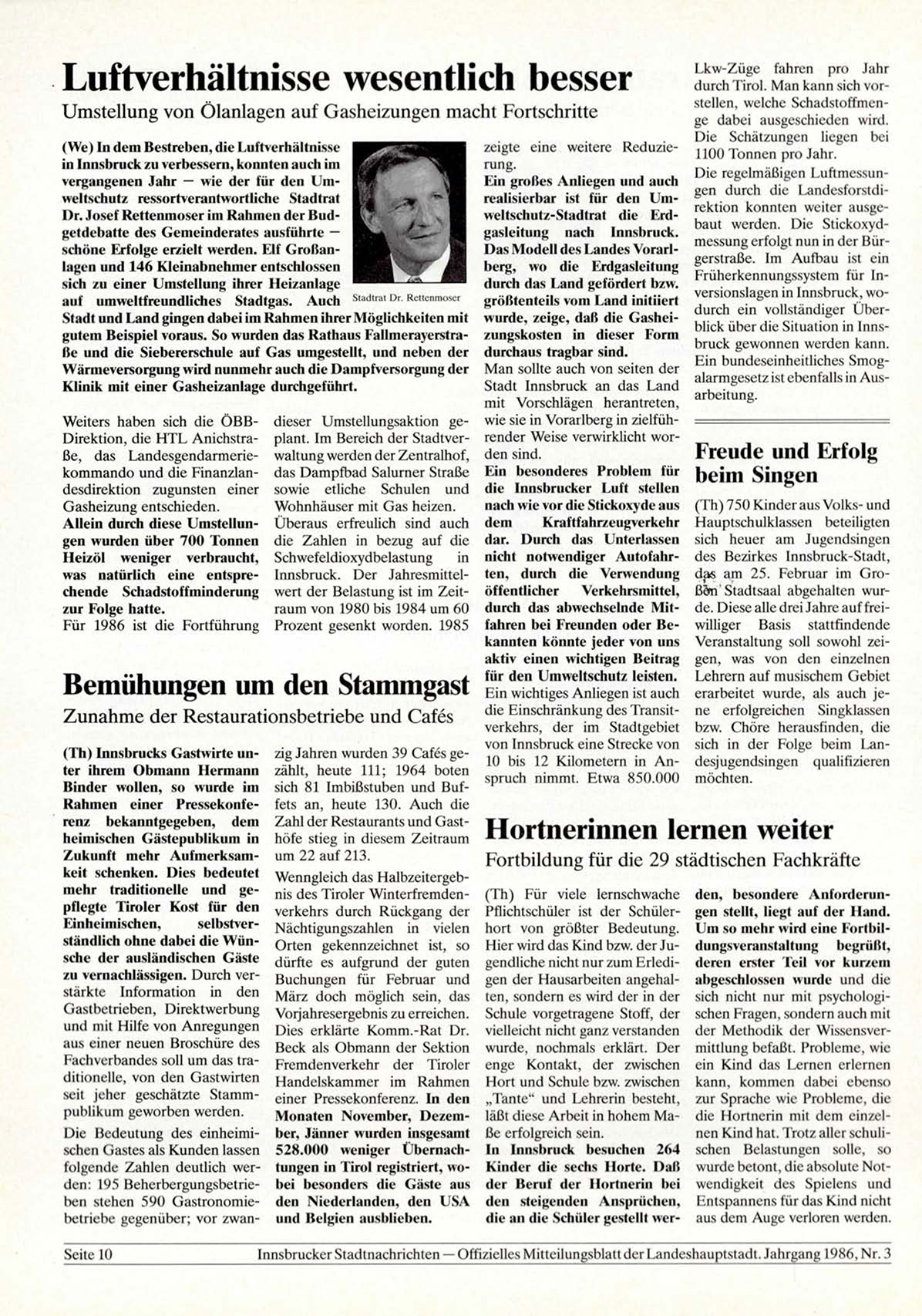 Innsbrucker Stadtnachrichten — Offizielles Mitteilungsblatt der Landeshauptstadt. Jahrgang 1986, N r . 3