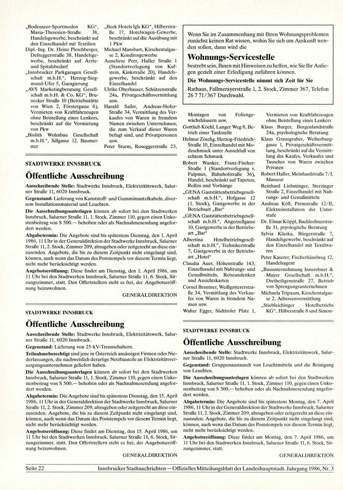 Innsbrucker Stadtnachrichten — Offizielles Mitteilungsblatt der Landeshauptstadt. Jahrgang 1986, Nr. 3