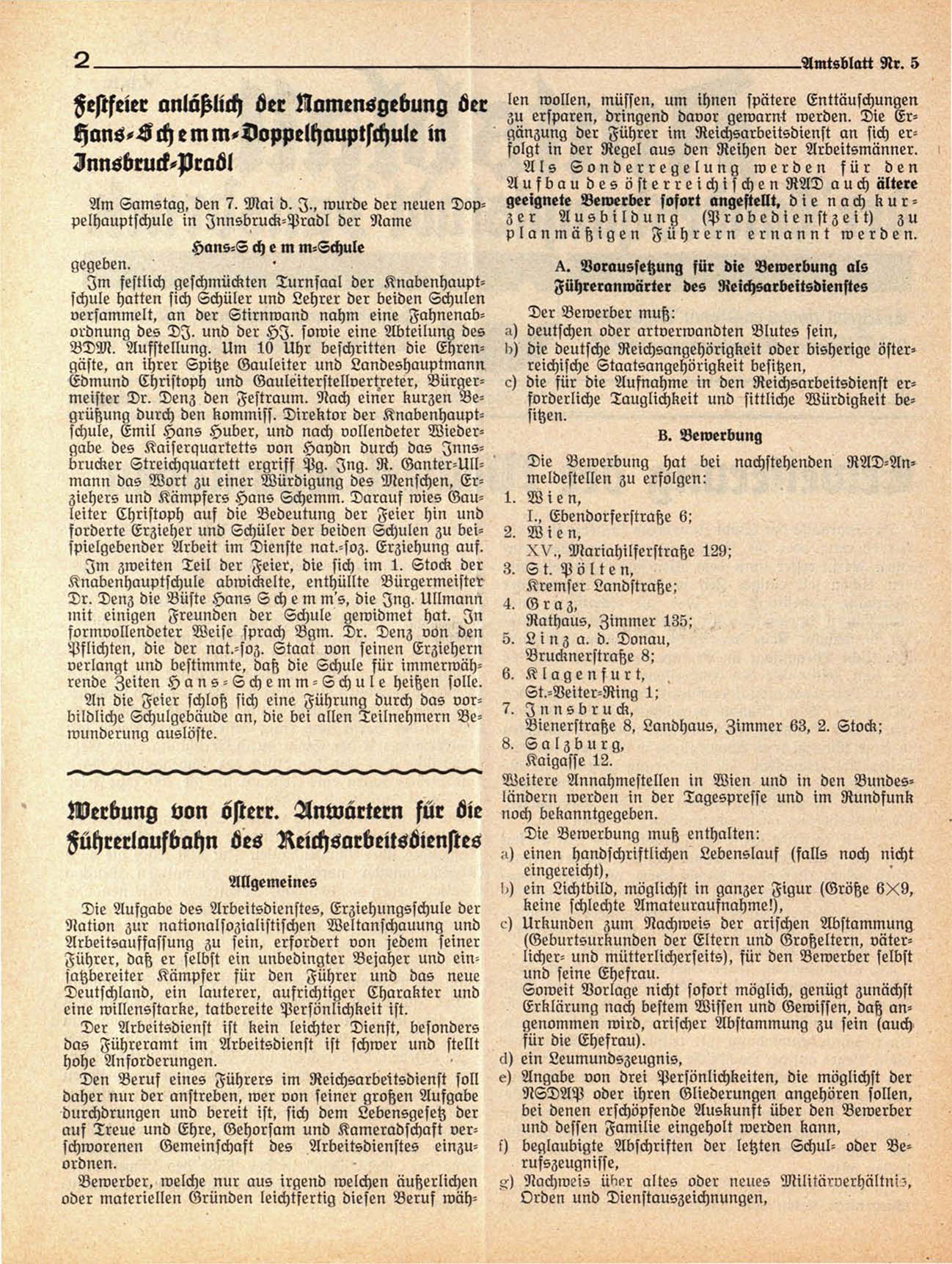 Am Samstag, den 7. Mai d. I., wurde der neuen Doppelhauptschule in Innsbruck-Pradl der Name