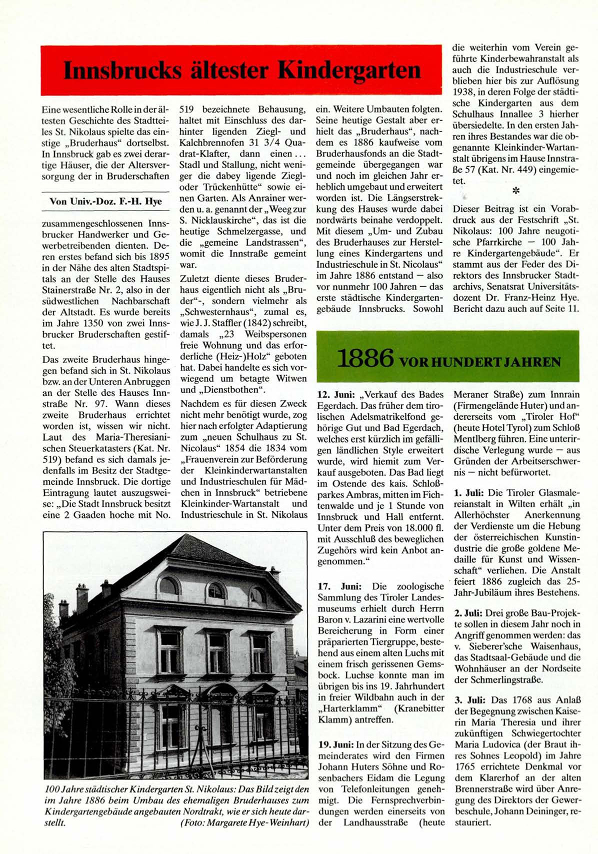 erste städtische Kindergarteng e b ä u d e Innsbrucks. Sowohl