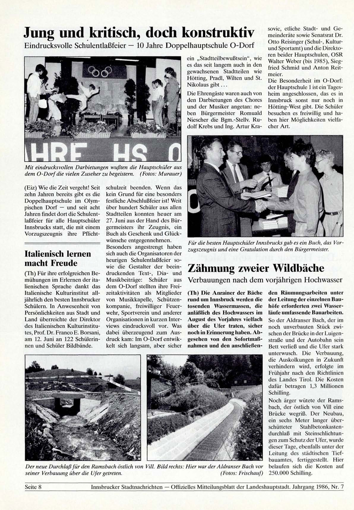 I n n s b r u c k e r S t a d t n a c h r i c h t e n — O f f i z i e l l e s M i t t e i l u n g s b l a t t d e r L a n d e s h a u p t s t a d t . J a h r g a n g 1986, N r . 7