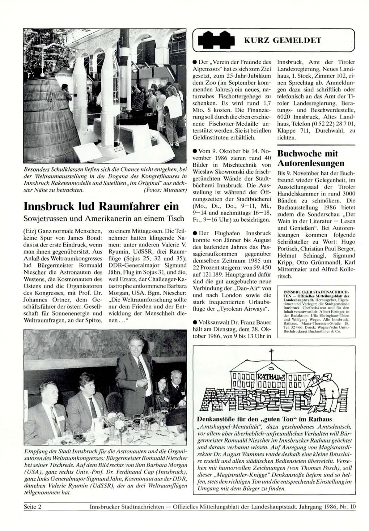 Innsbrucker Stadtnachrichten — Offizielles Mitteilungsblatt der Landeshauptstadt. Jahrgang 1986, Nr. 10