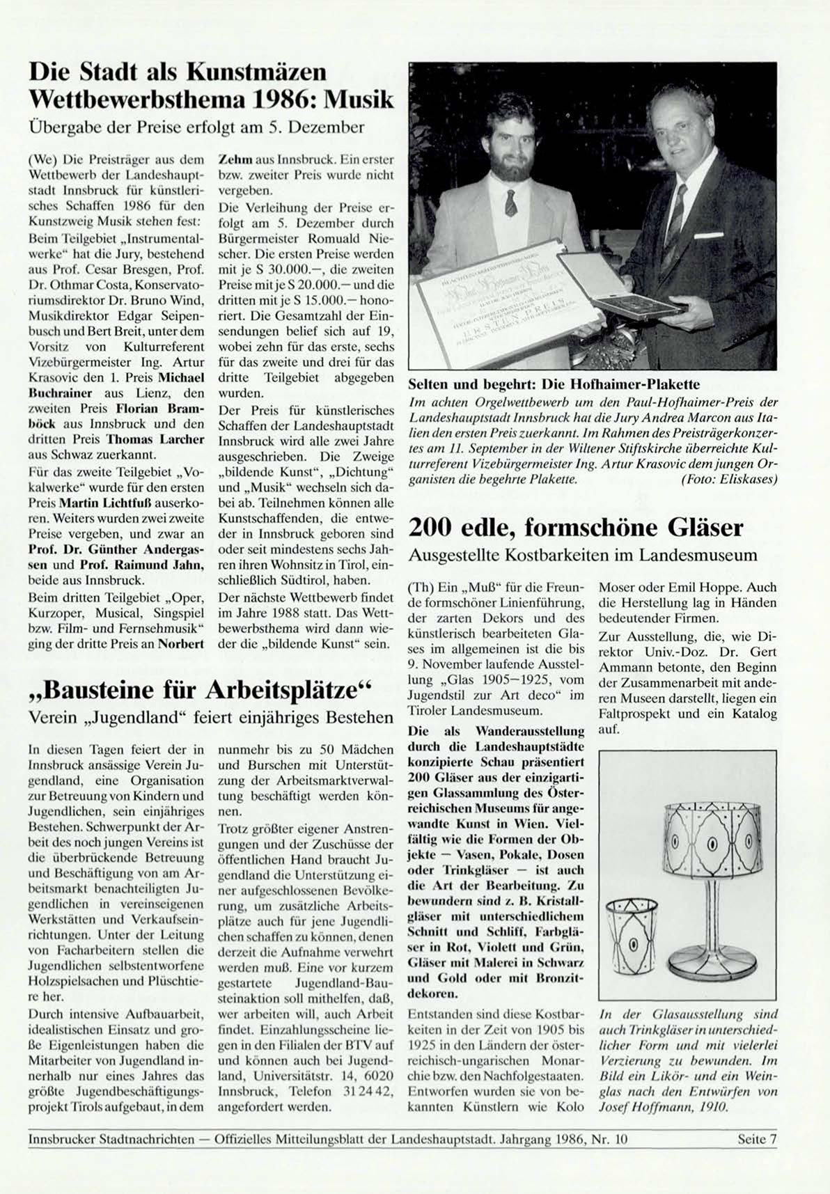 Innsbrucker Stadtnachrichten — Offizielles Mitteilungsblatt der Landeshauptstadt. Jahrgang 1986, Nr. 10