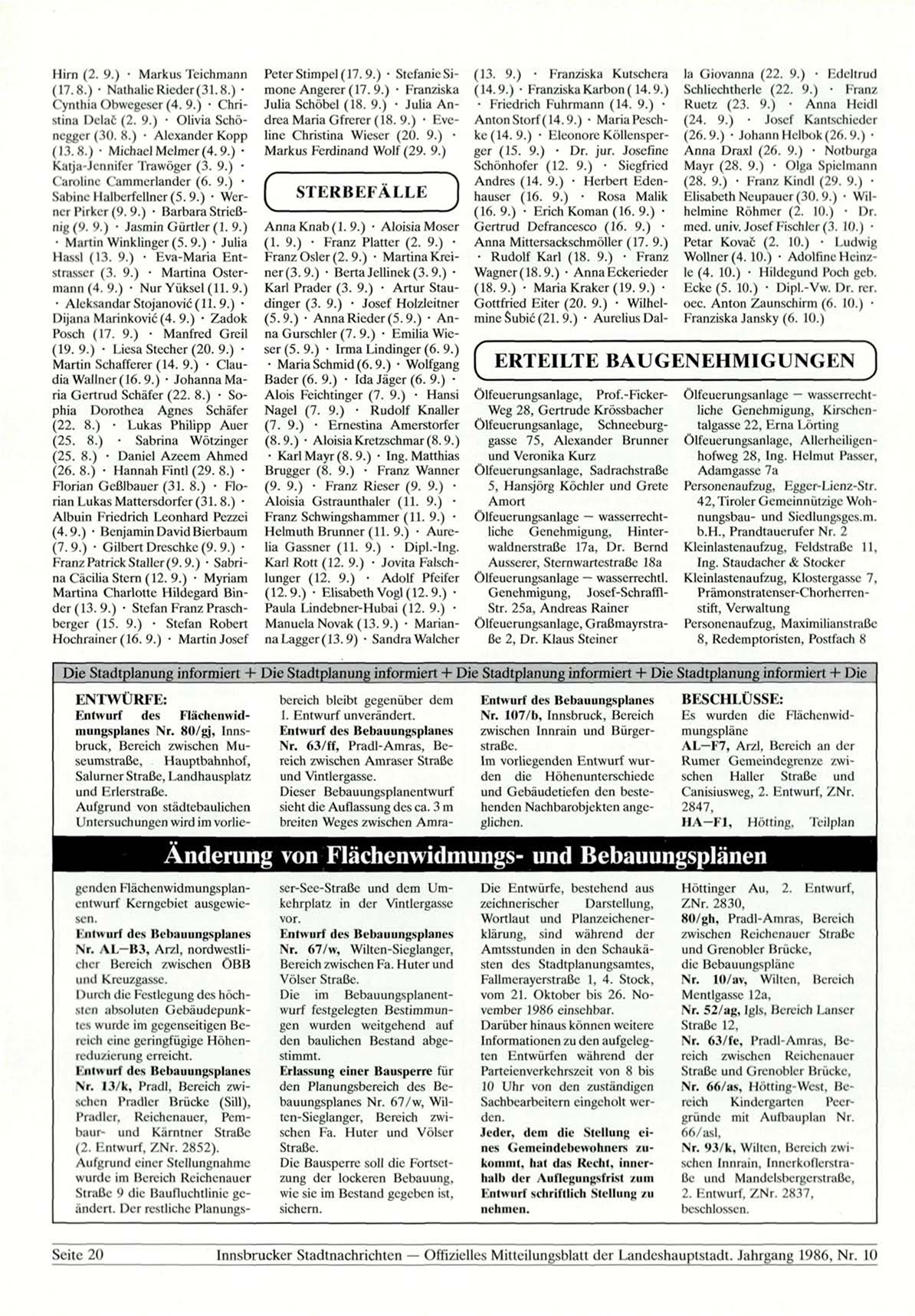Innsbrucker Stadtnachrichten — Offizielles Mitteilungsblatt der Landeshauptstadt. Jahrgang 1986, Nr. 10