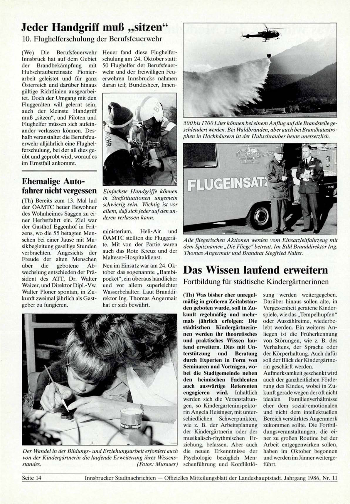 Innsbrucker Stadtnachrichten — Offizielles Mitteilungsblatt der Landeshauptstadt. Jahrgang 1986, Nr. 11