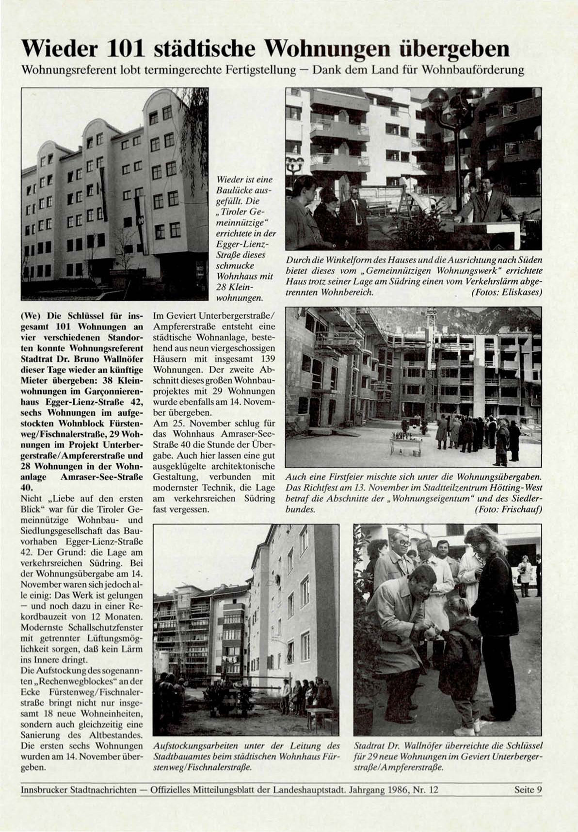 sechs Wohnungen im aufgestockten Wohnblock Fürstenweg/Fischnalerstraße, 29 Wohnungen im Projekt Unterbergerst ralle/Ampfererstraße und