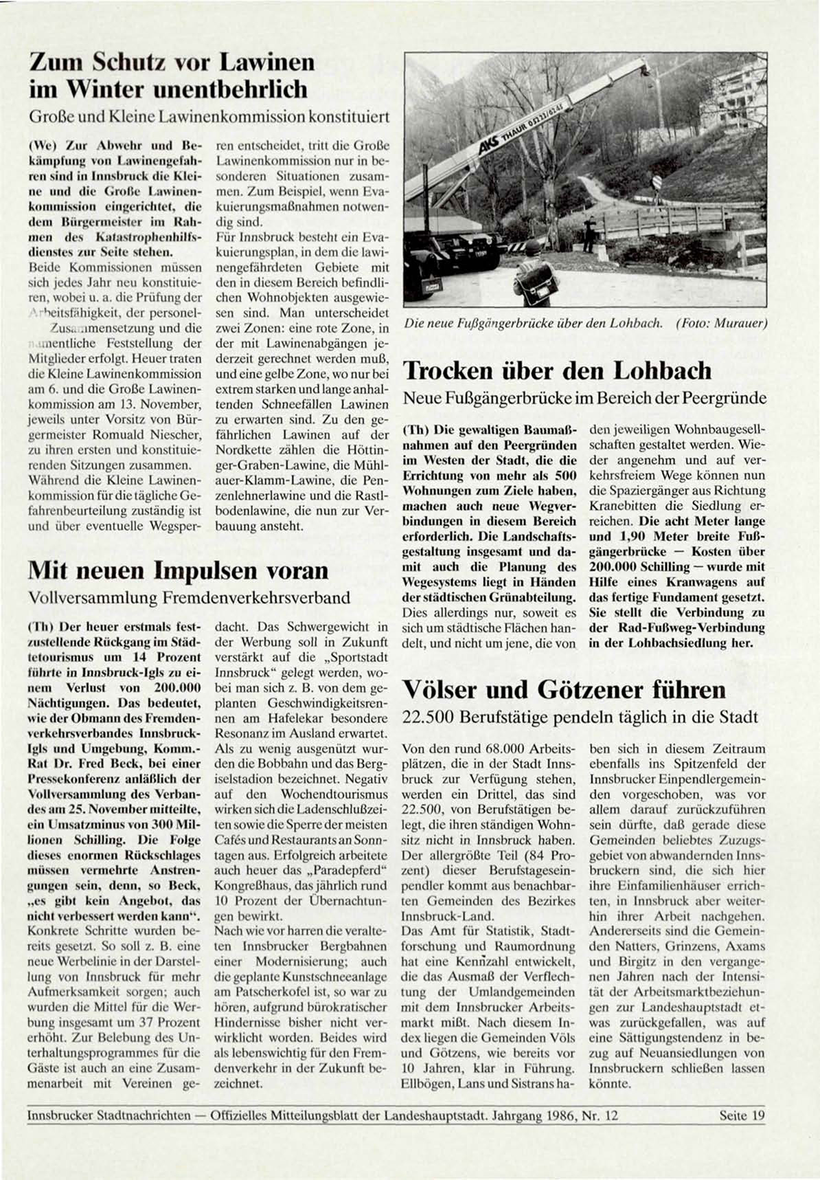 Innsbrucker Stadtnachrichten — Offizielles Mitteilungsblatt der Landeshauptstadt. Jahrgang 1986, Nr. 12