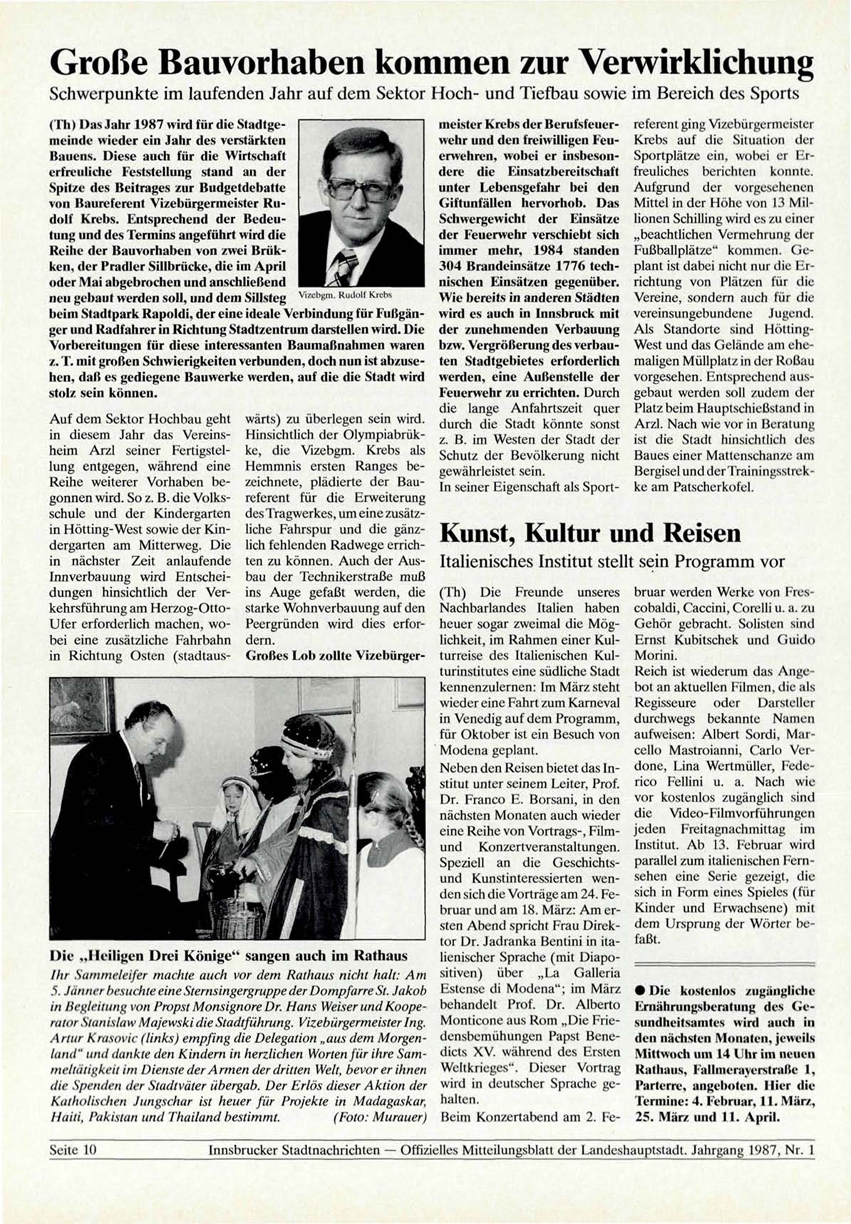 Innsbrucker Stadtnachrichten — Offizielles Mitteilungsblatt der Landeshauptstadt. Jahrgang 1987, Nr. 1