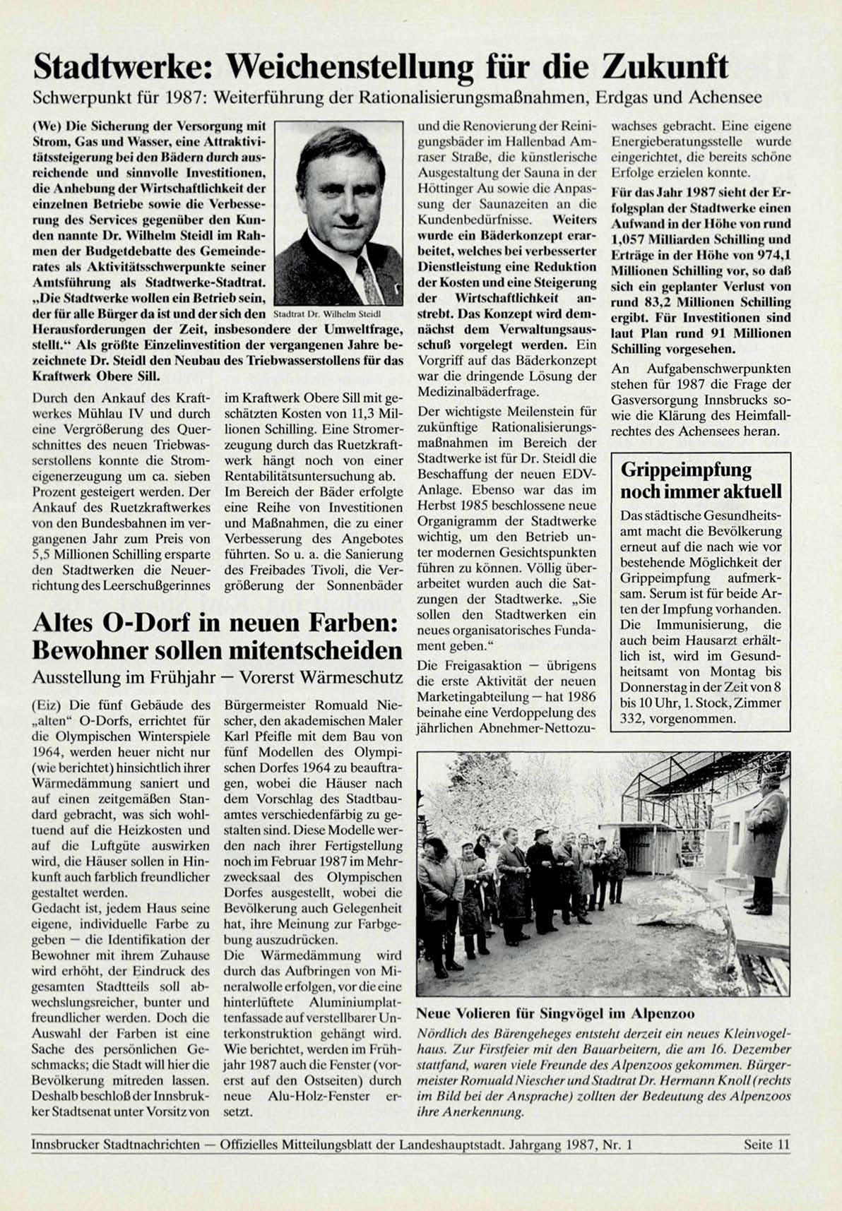 Innsbrucker Stadtnachrichten — Offizielles Mitteilungsblatt der Landeshauptstadt. Jahrgang 1987, Nr. 1
