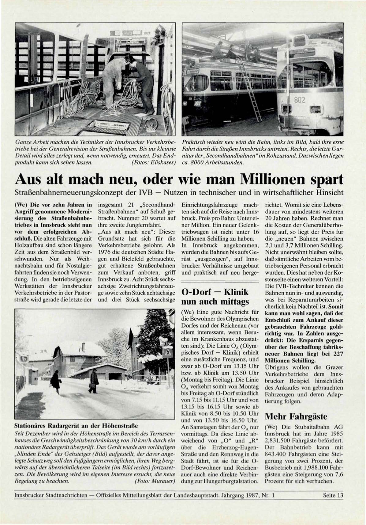 Innsbrucker Stadtnachrichten — Offizielles Mitteilungsblatt der Landeshauptstadt. Jahrgang 1987, Nr. 1