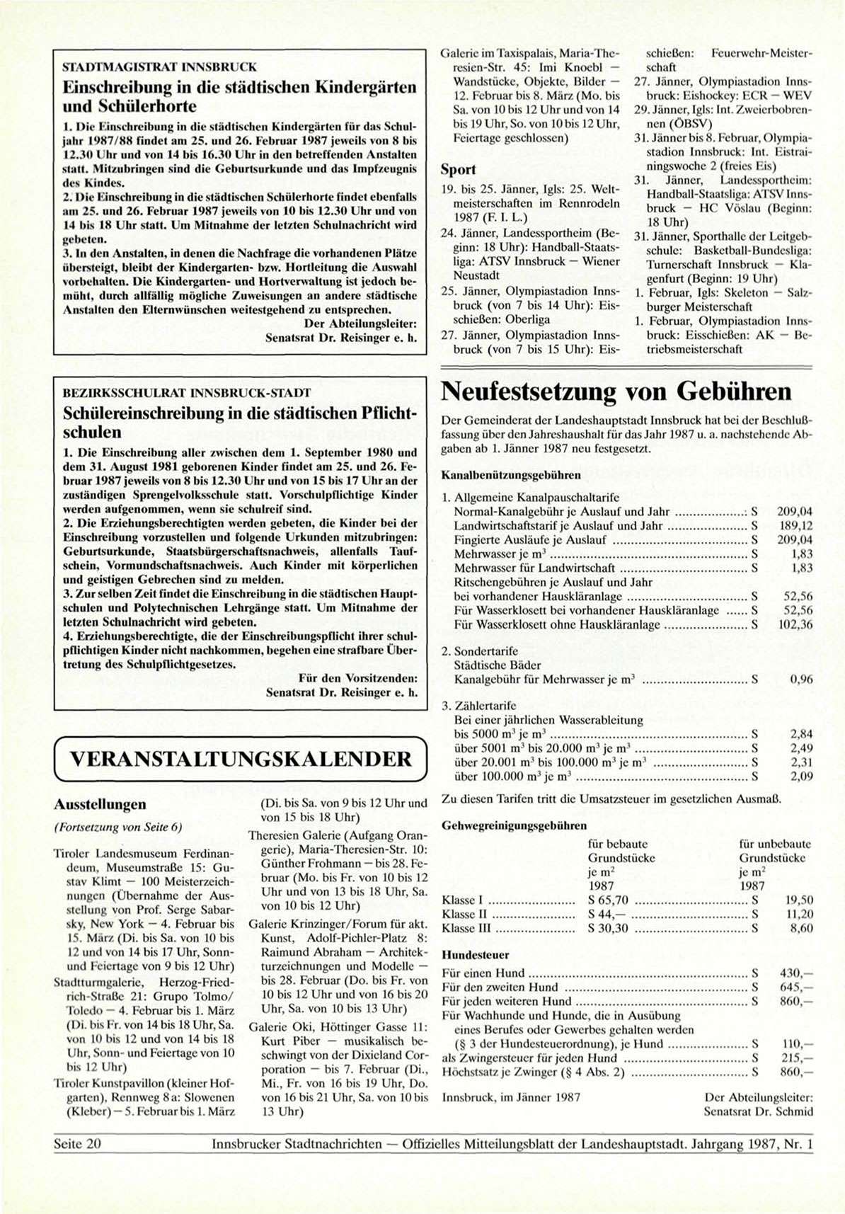 Innsbrucker Stadtnachrichten — Offizielles Mitteilungsblatt der Landeshauptstadt. Jahrgang 1987, Nr. 1