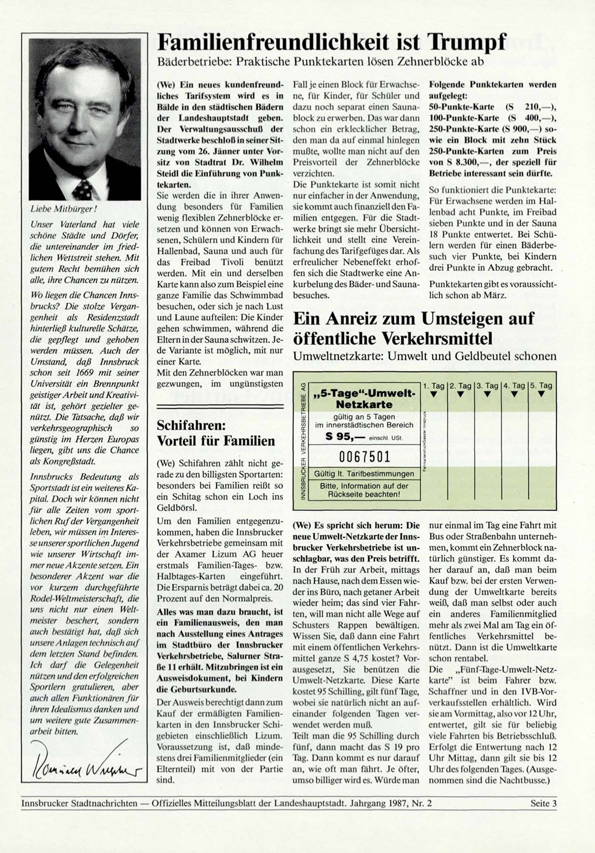 Innsbrucker Stadtnachrichten — Offizielles Mitteilungsblatt der Landeshauptstadt. Jahrgang 1987, Nr. 2