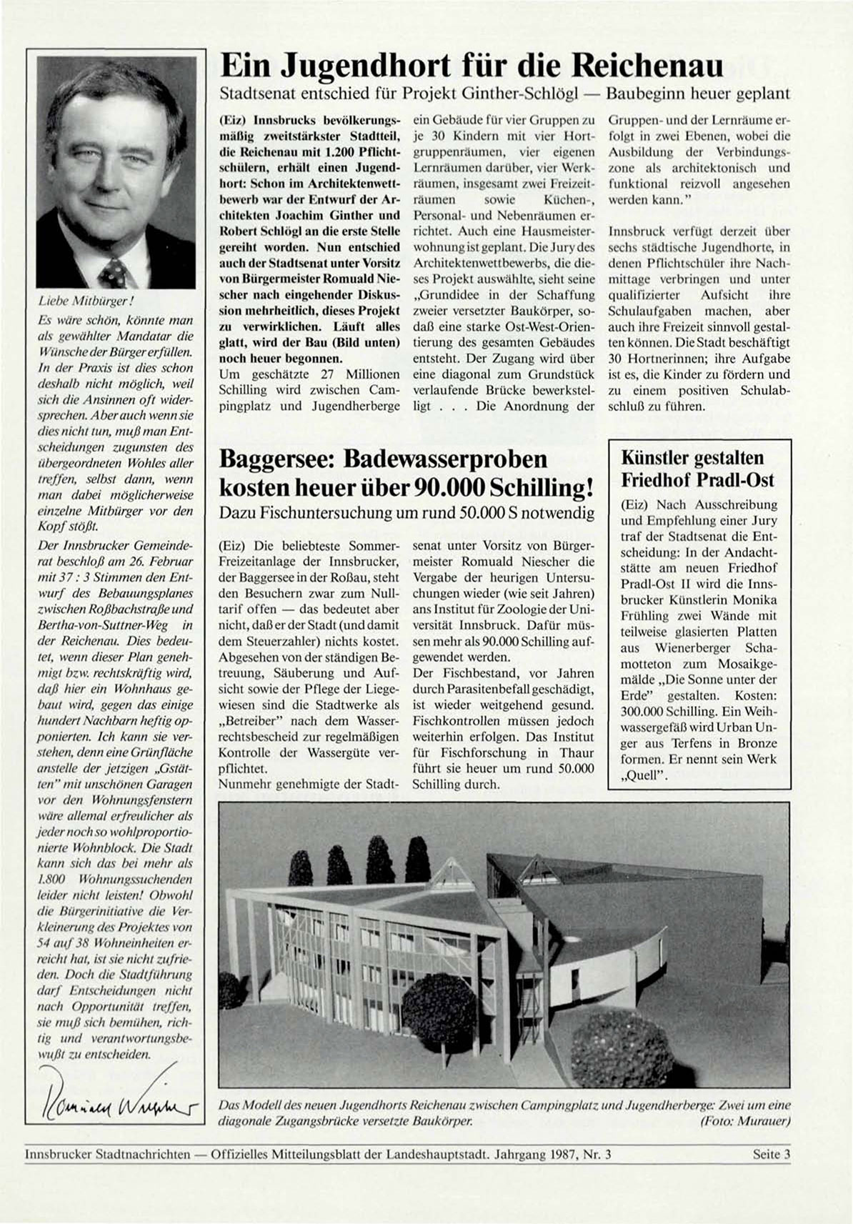 Innsbrucker Stadtnachrichten — Offizielles Mitteilungsblatt der Landeshauptstadt. Jahrgang 1987, Nr. 3