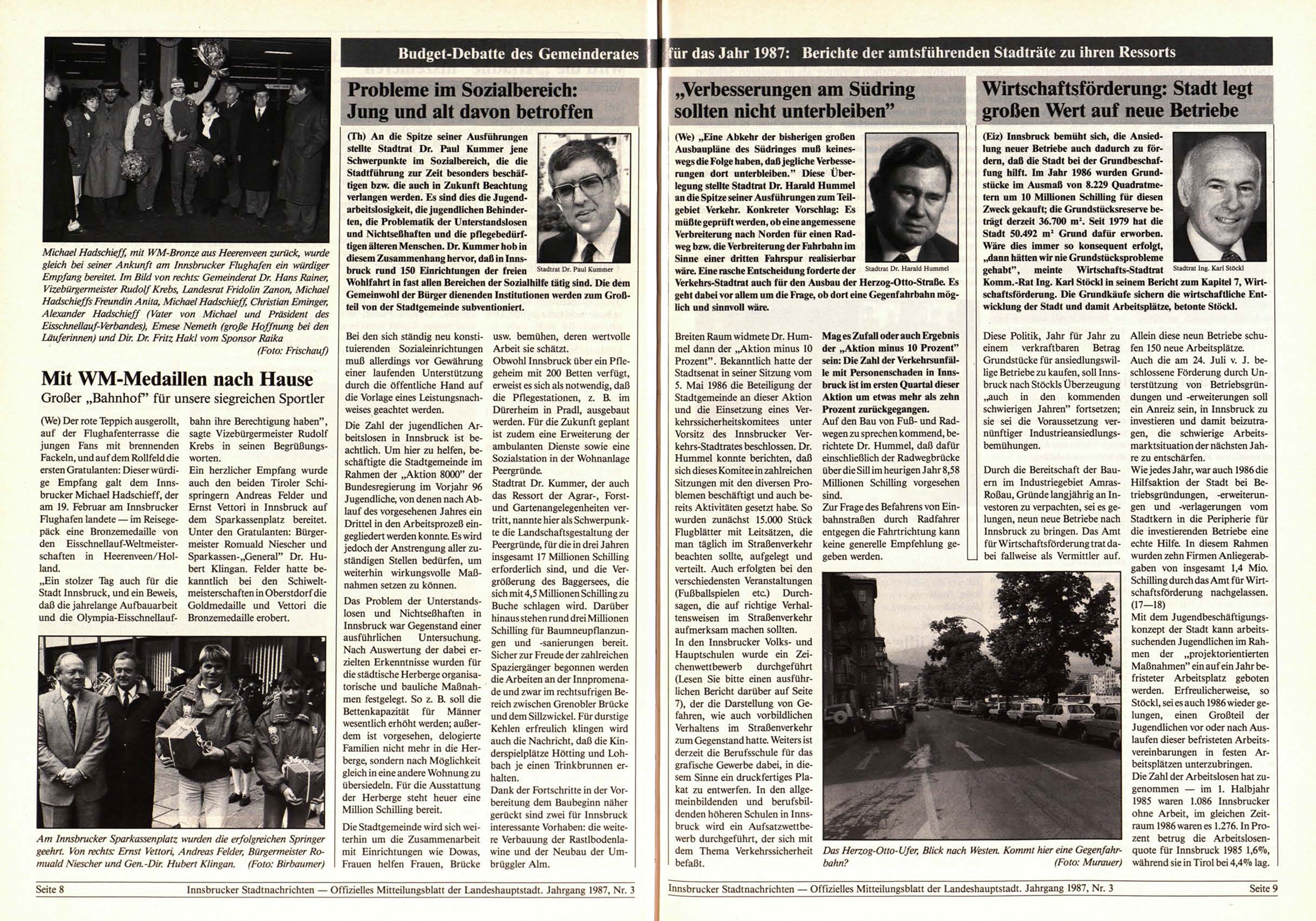 Innsbrucker Stadtnachrichten — Offizielles Mitteilungsblatt der Landeshauptstadt. Jahrgang 1987, Nr. 3