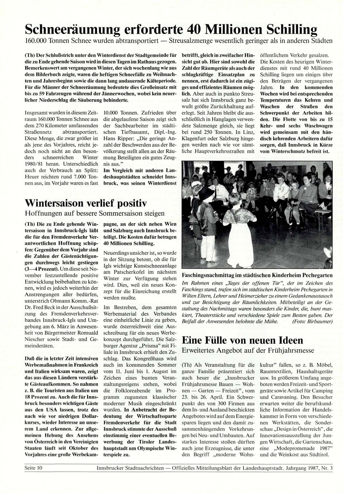 Innsbrucker Stadtnachrichten — Offizielles Mitteilungsblatt der Landeshauptstadt. Jahrgang 1987, Nr. 3