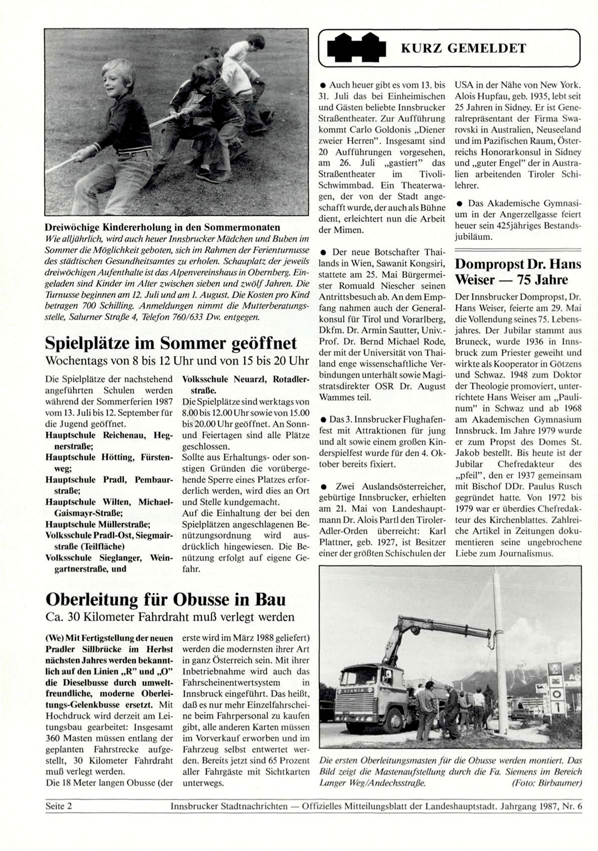Innsbrucker Stadtnachrichten — Offizielles Mitteilungsblatt der Landeshauptstadt. Jahrgang 1987, Nr. 6