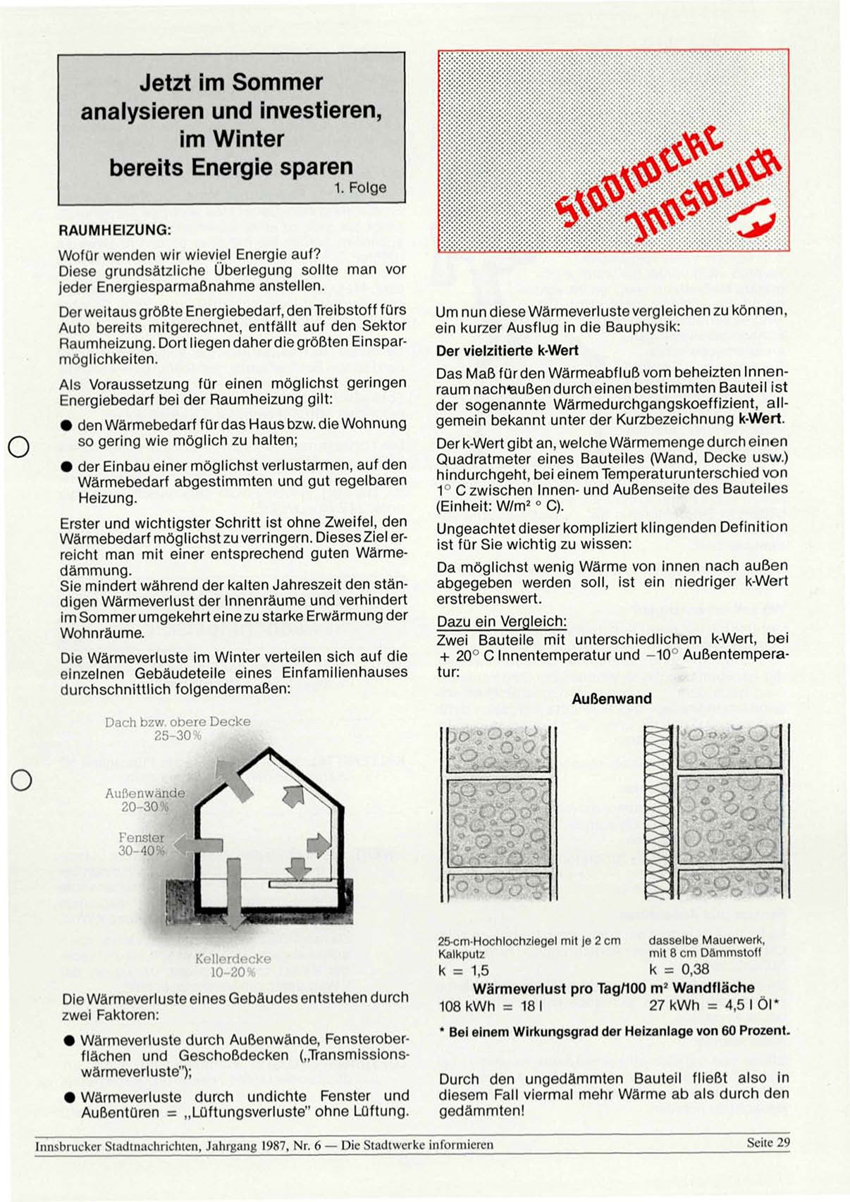 Innsbrucker Stadtnachrichten, Jahrgang 1987, Nr. 6 — Die Stadtwerke informieren
