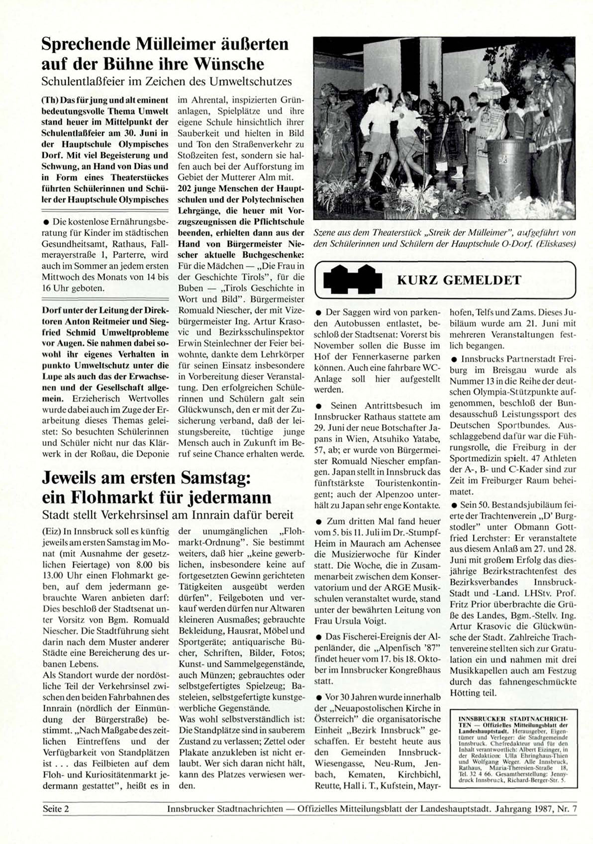 Innsbrucker Stadtnachrichten — Offizielles Mitteilungsblatt der Landeshauptstadt. Jahrgang 1987, Nr. 7
