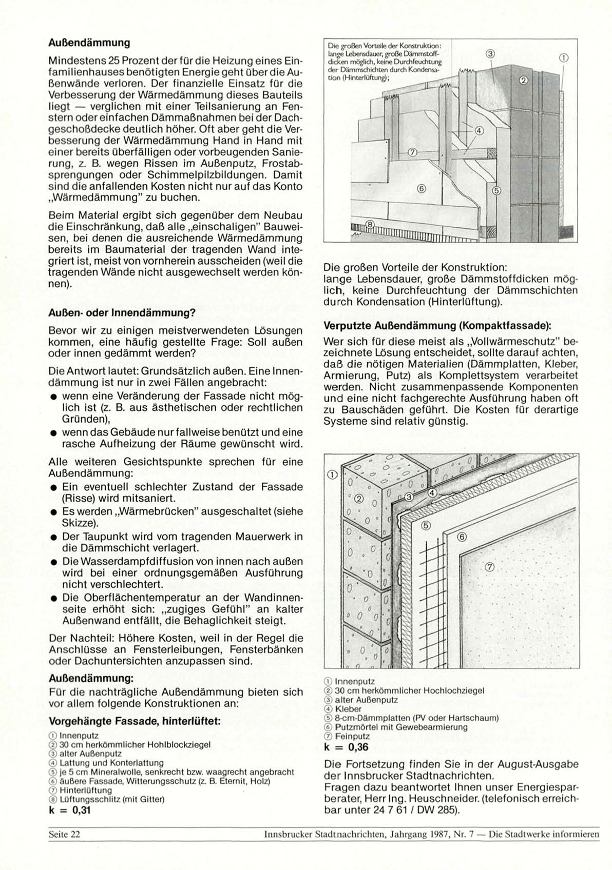 Innsbrucker Stadtnachrichten, Jahrgang 1987, Nr. 7 — Die Stadtwerke informieren