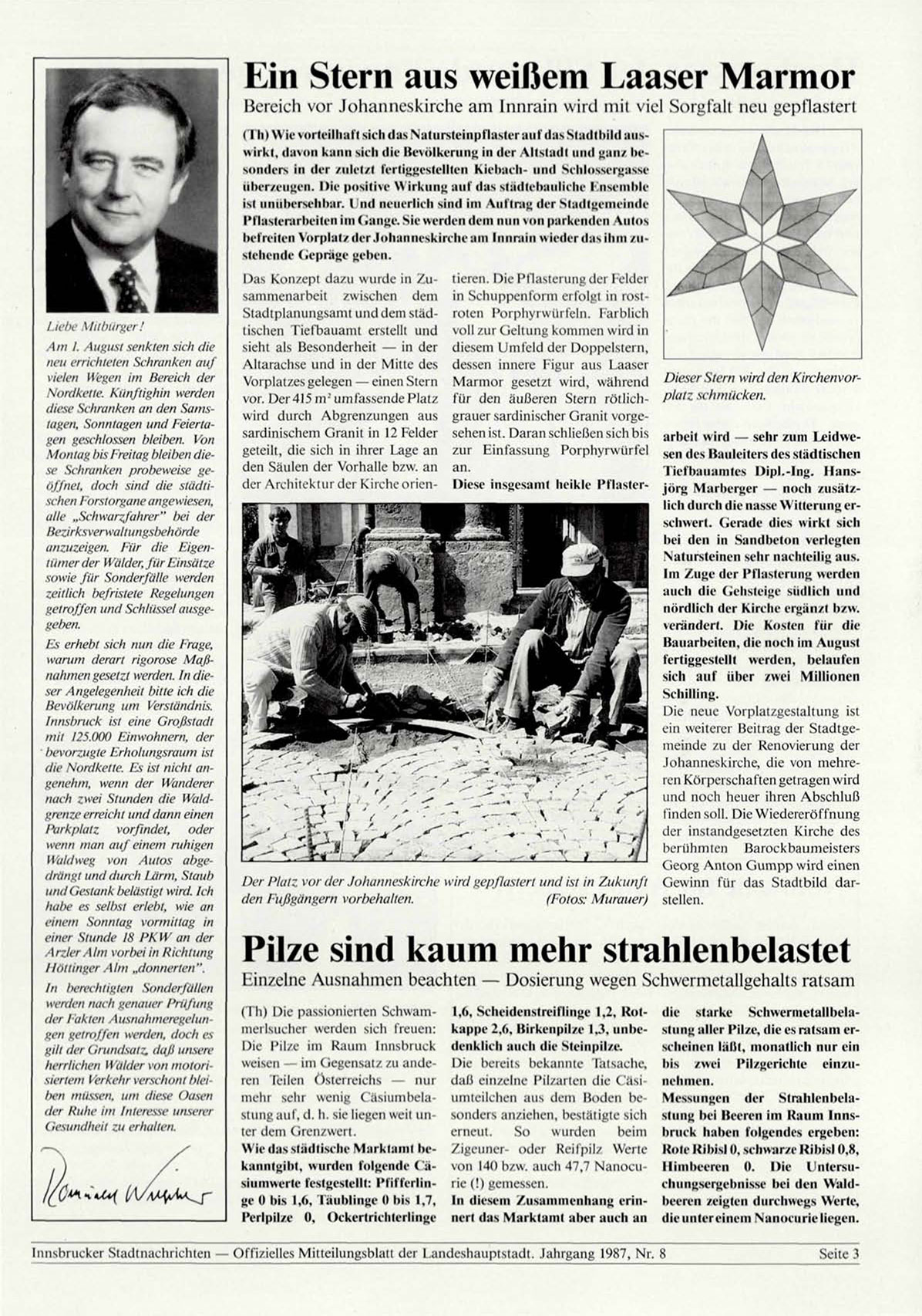 Innsbrucker Stadtnachrichten — Offizielles Mitteilungsblatt der Landeshauptstadt. Jahrgang 1987, Nr. 8