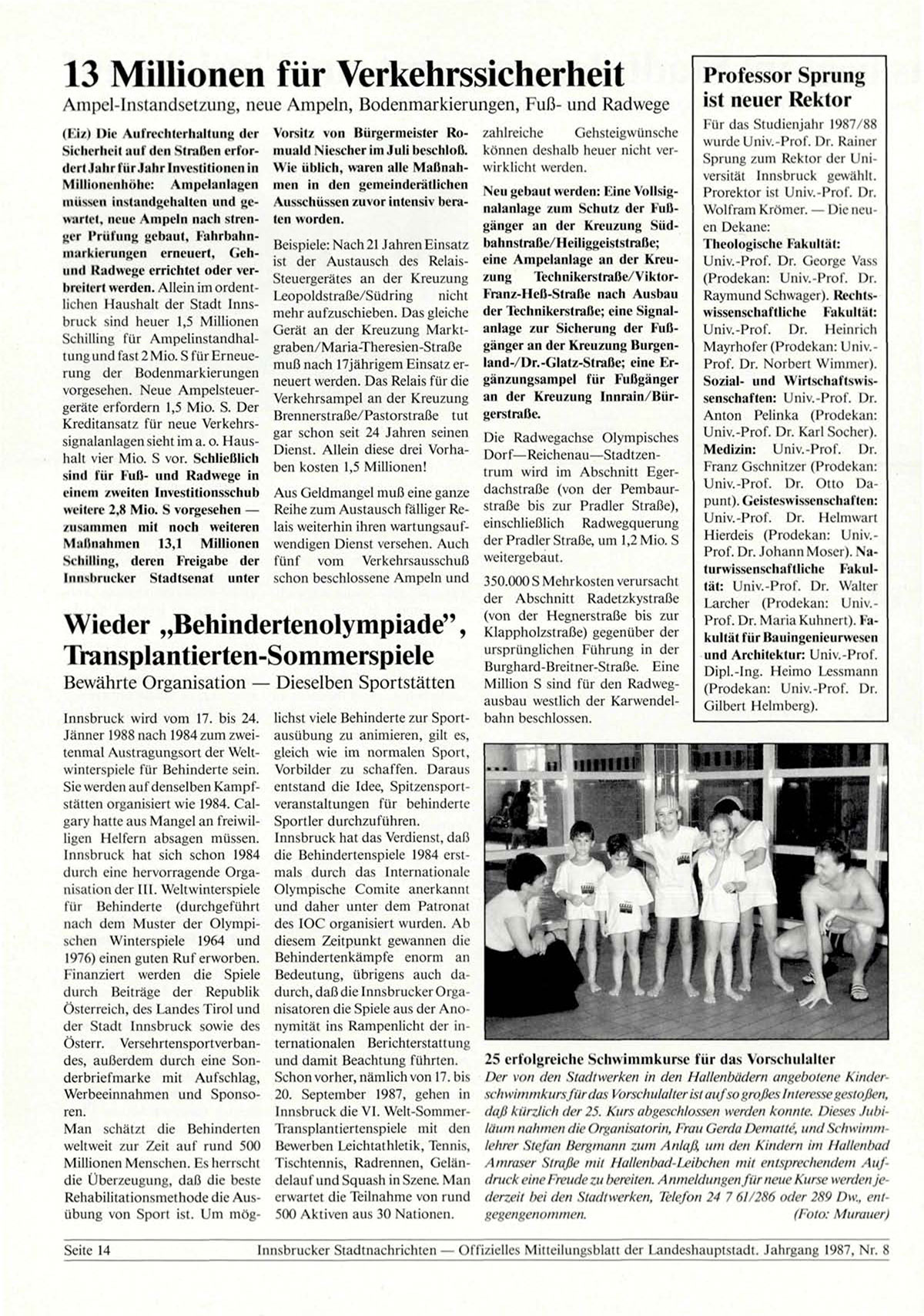 Innsbrucker Stadtnachrichten — Offizielles Mitteilungsblatt der Landeshauptstadt. Jahrgang 1987, Nr. 8