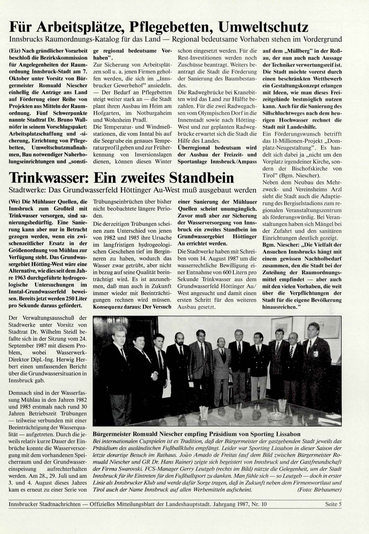 Innsbrucker Stadtnachrichten — Offizielles Mitteilungsblatt der Landeshauptstadt. Jahrgang 1987, Nr. 10