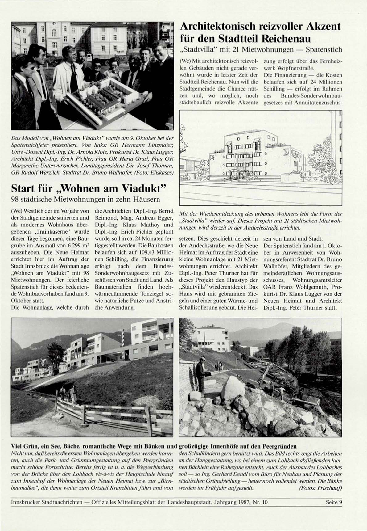 Innsbrucker Stadtnachrichten — Offizielles Mitteilungsblatt der Landeshauptstadt. Jahrgang 1987, Nr. 10