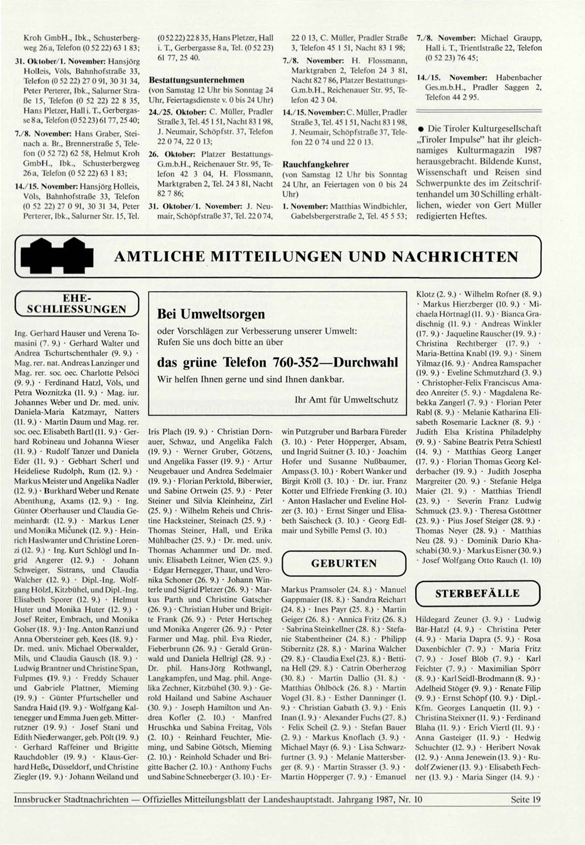 limsbrucker Stadtnachrichten — Offizielles Mitteilungsblatt der Landeshauptstadt. Jahrgang 1987, Nr. 10