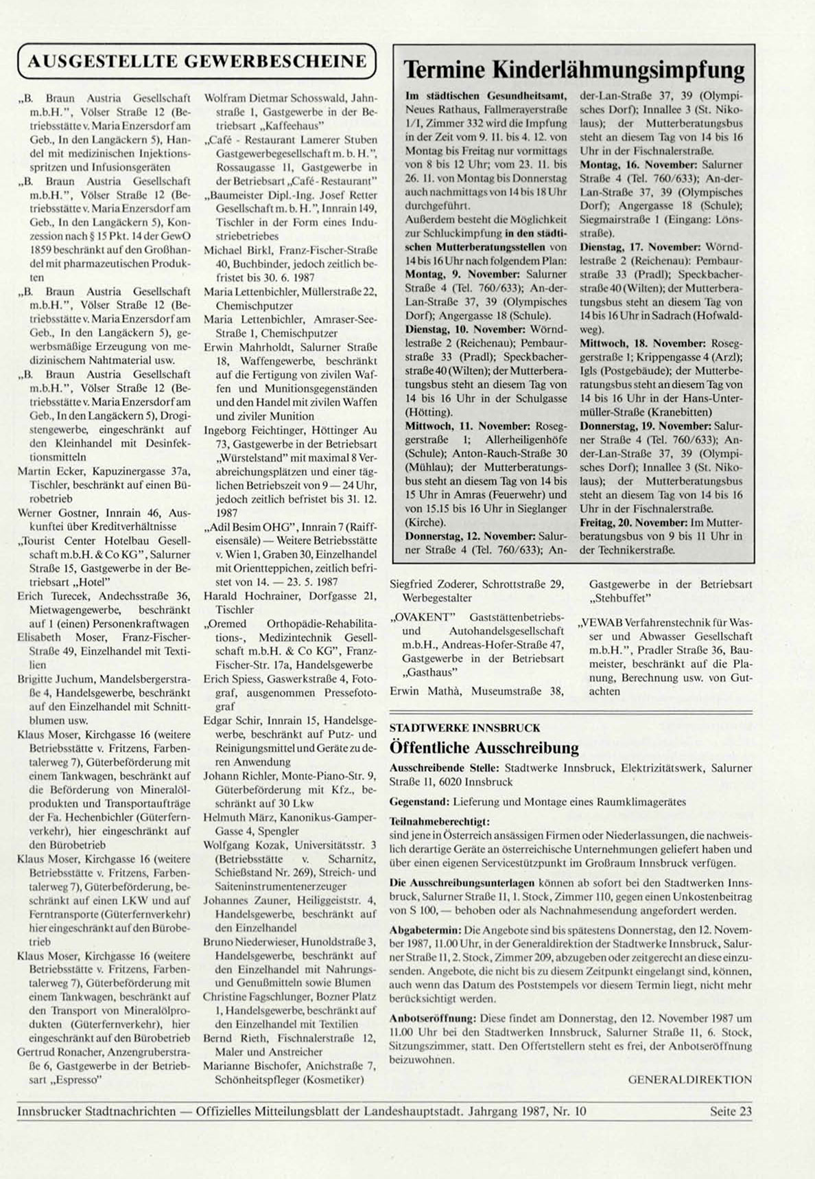 Innsbrucker Stadtnachrichten — Offizielles Mitteilungsblatt der Landeshauptstadt. Jahrgang 1987, Nr. 10