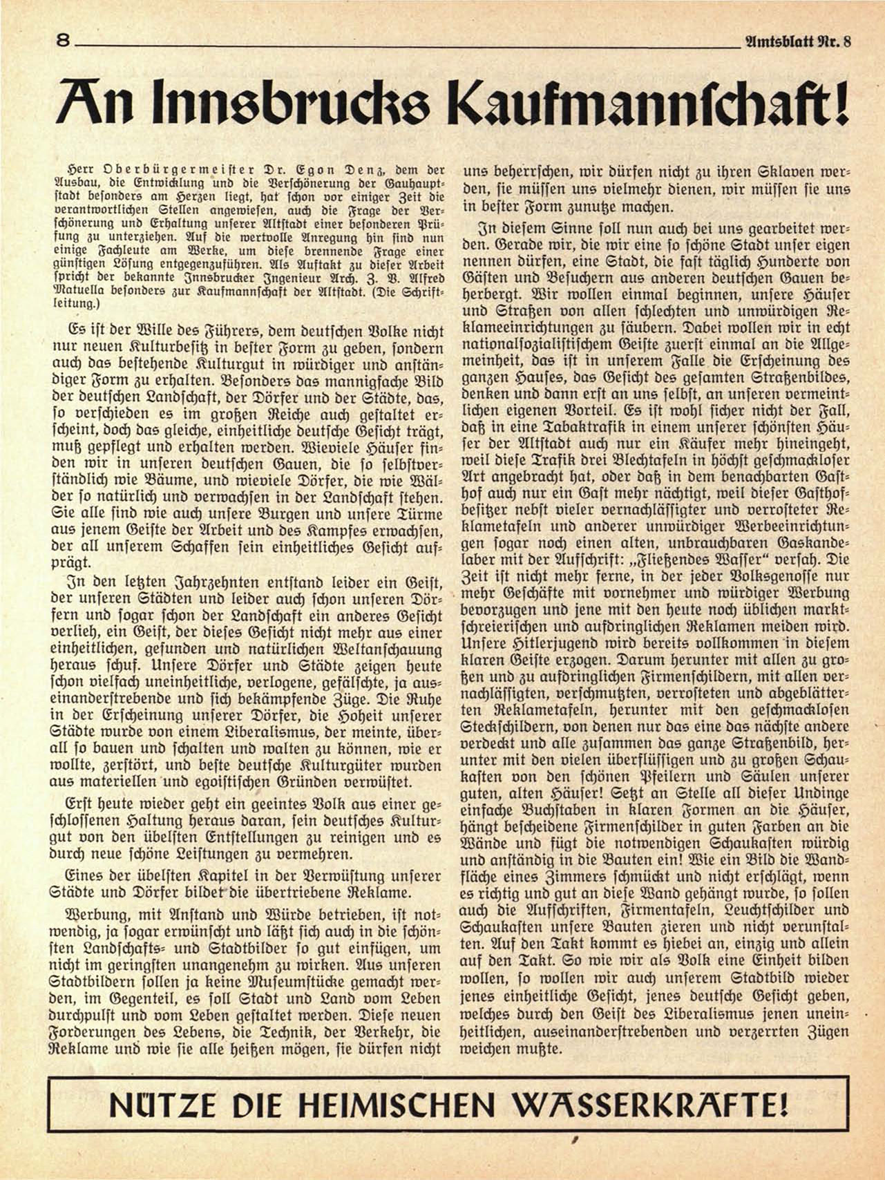 verantwortlichen Stellen angewiesen, auch die Frage der Verschönerung und Erhaltung unserer Altstadt einer besonderen Prüfung zu unterziehen. Auf die wertvolle Anregung hin sind nun