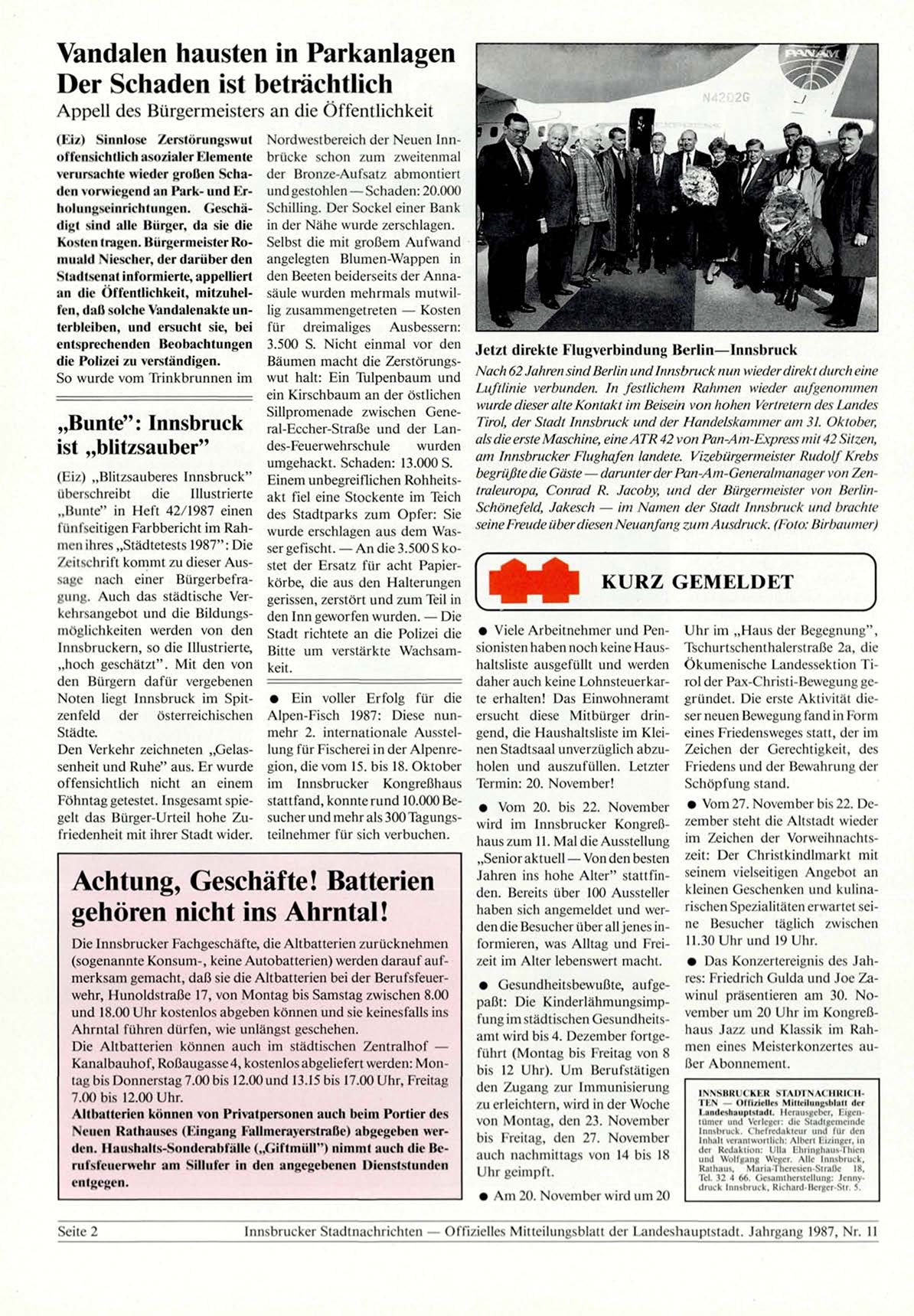 Innsbrucker Stadtnachrichten — Offizielles Mitteilungsblatt der Landeshauptstadt. Jahrgang 1987, Nr. 11