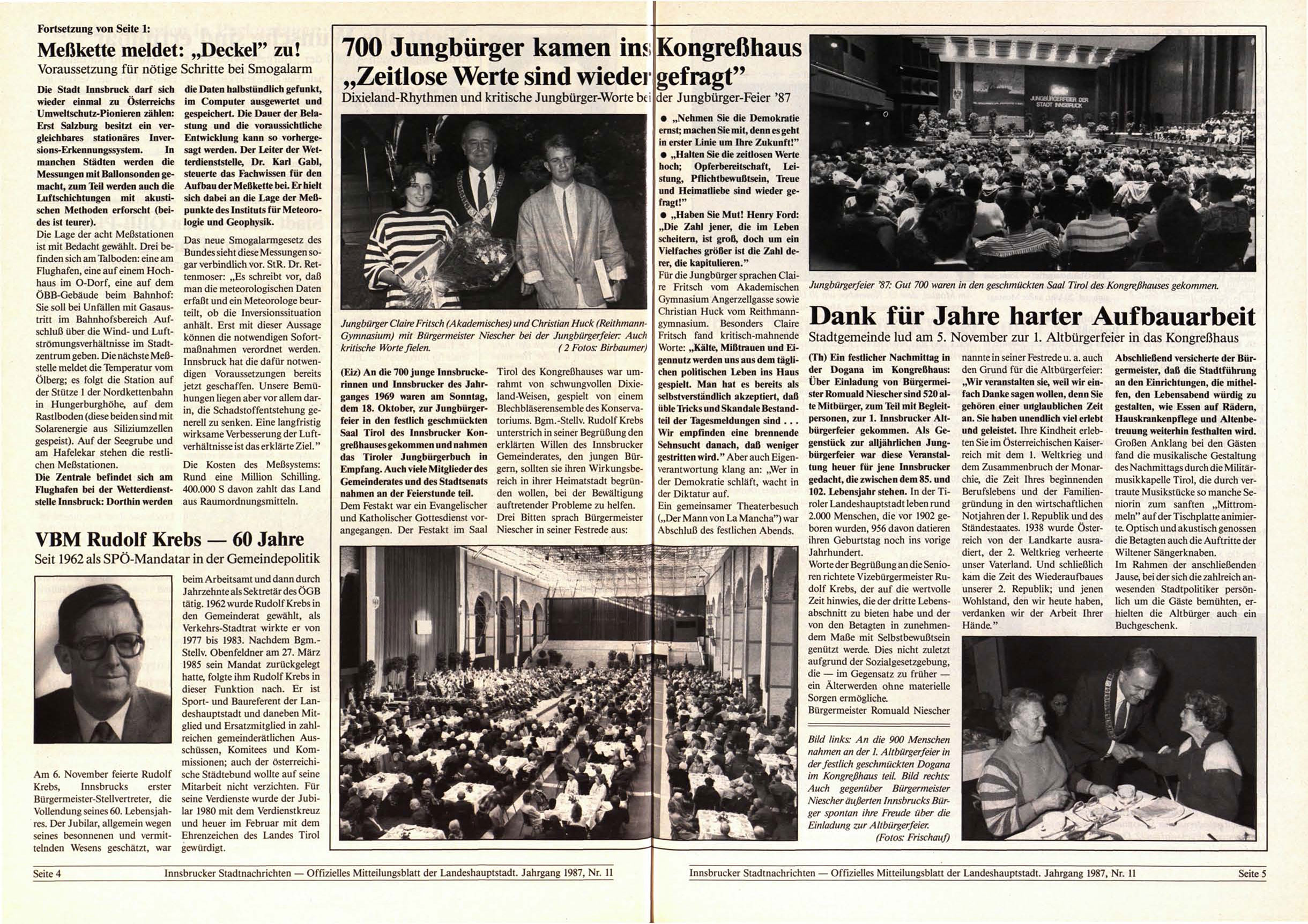 Innsbrucker Stadtnachrichten — Offizielles Mitteilungsblatt der Landeshauptstadt. Jahrgang 1987, Nr. 11