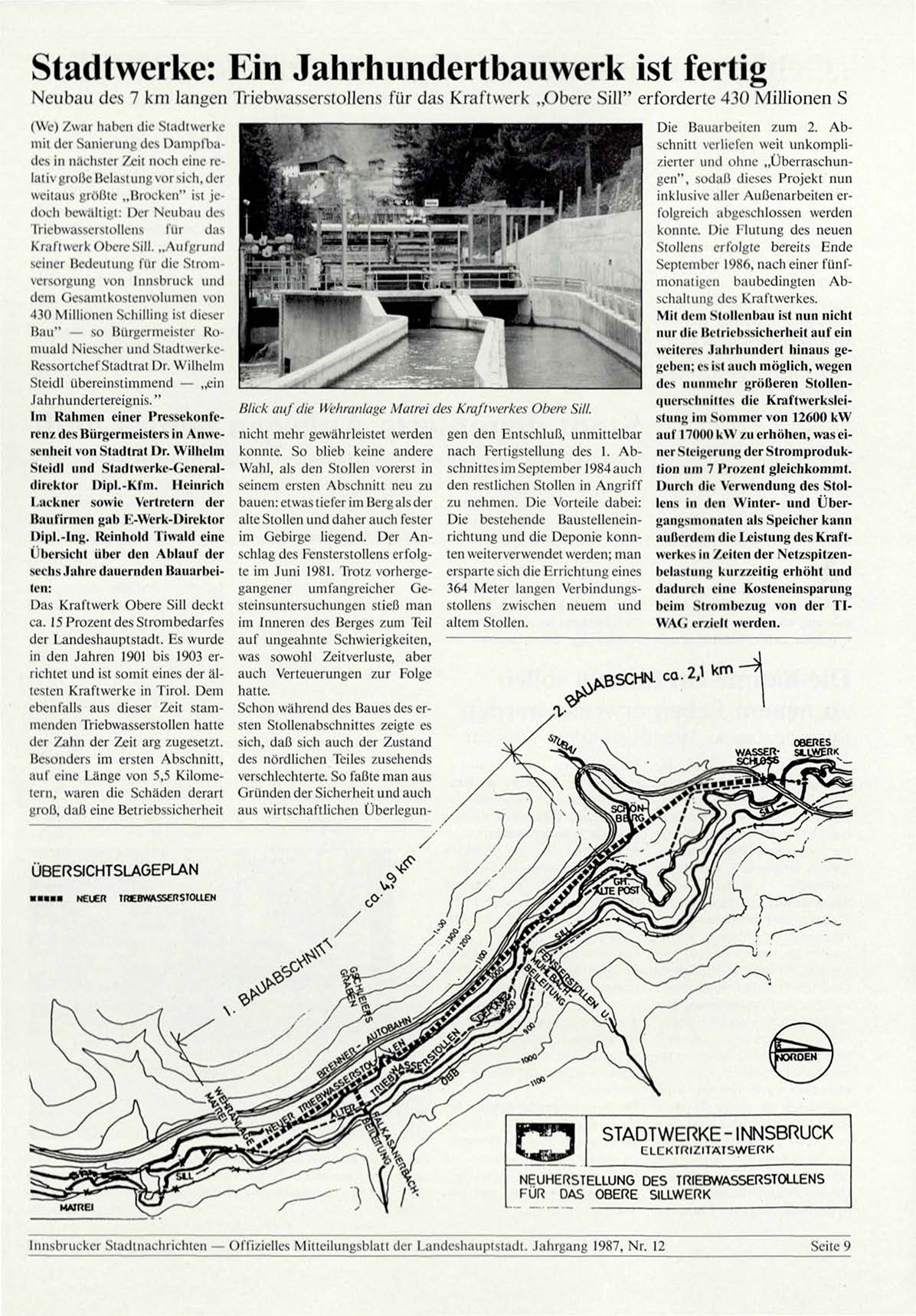 Neubau ties 7 km langen li iebwassersiollens für das Kraftwerk „( )bere Sill" erforderte 430 Millionen S