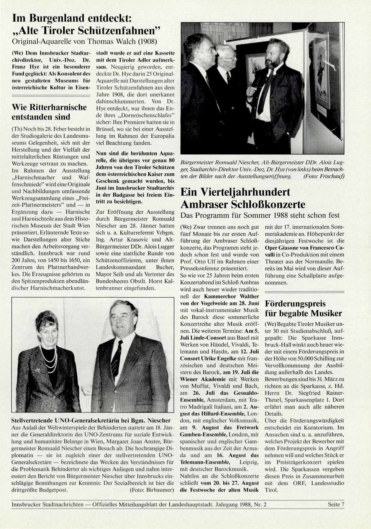 Innsbrucker Stadtnachrichten — Offizielles Mitteilungsblatt der Landeshauptstadt. Jahrgang 1988, Nr. 2
