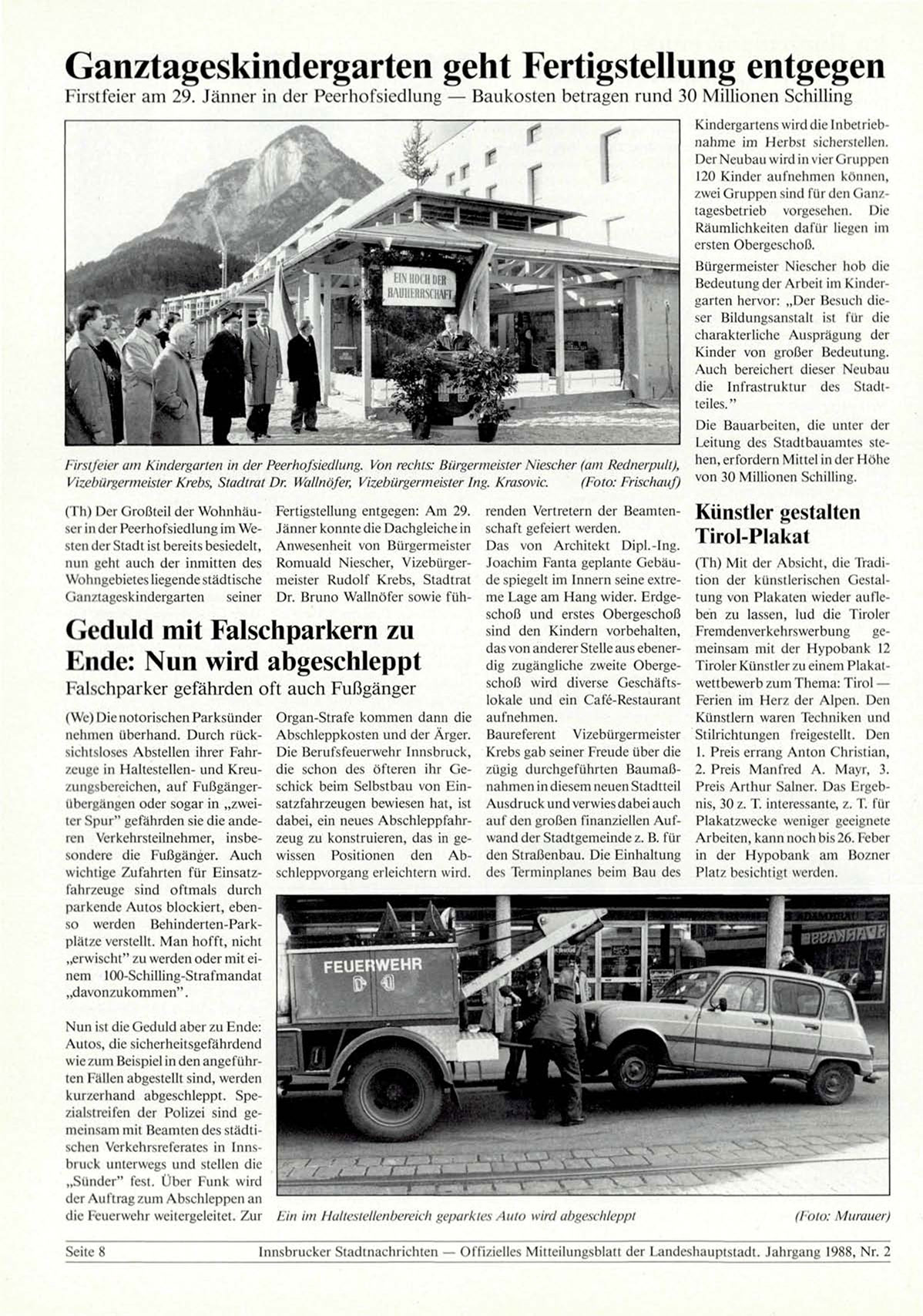 Innsbrucker Stadtnachrichten — Offizielles Mitteilungsblatt der Landeshauptstadt. Jahrgang 1988, Nr. 2