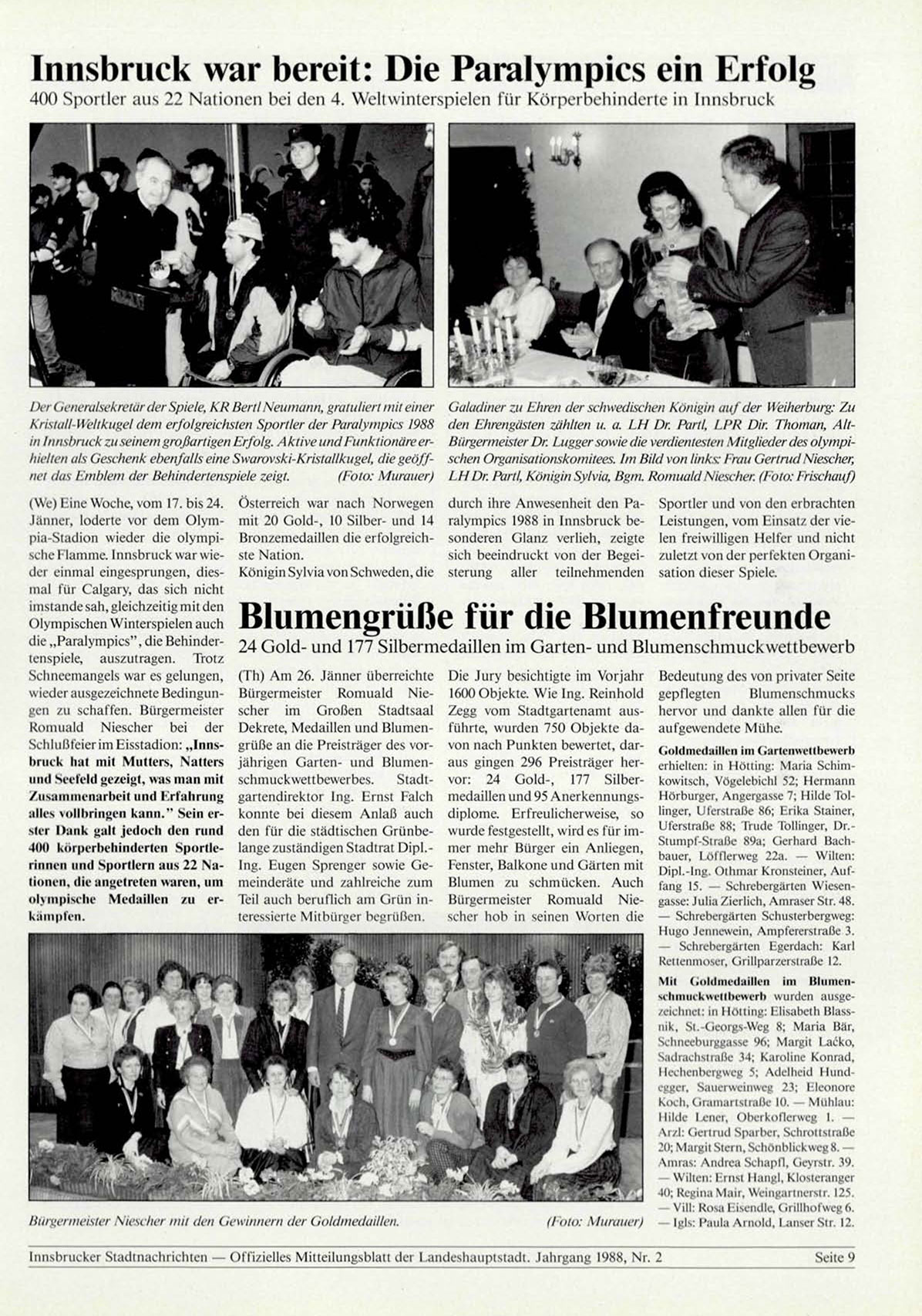 Innsbrucker Stadtnachrichten — Offizielles Mitteilungsblatt der Landeshauptstadt. Jahrgang 1988, Nr. 2