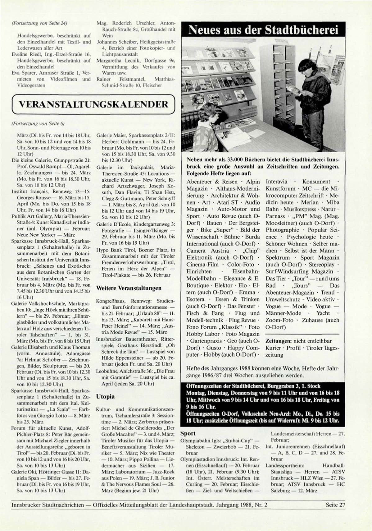 Innsbrucker Stadtnachrichten — Offizielles Mitteilungsblatt der Landeshauptstadt. Jahrgang 1988, Nr. 2