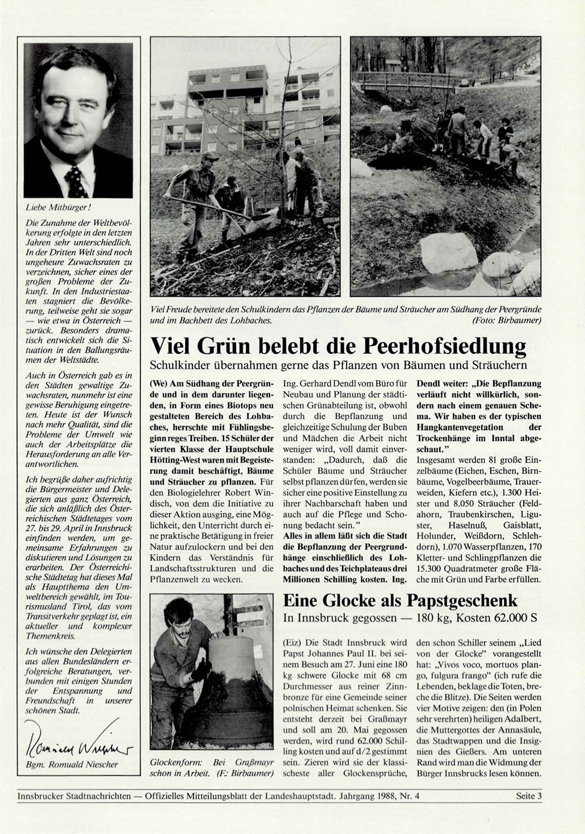 Innsbrucker Stadtnachrichten — Offizielles Mitteilungsblatt der Landeshauptstadt. Jahrgang 1988, Nr. 4