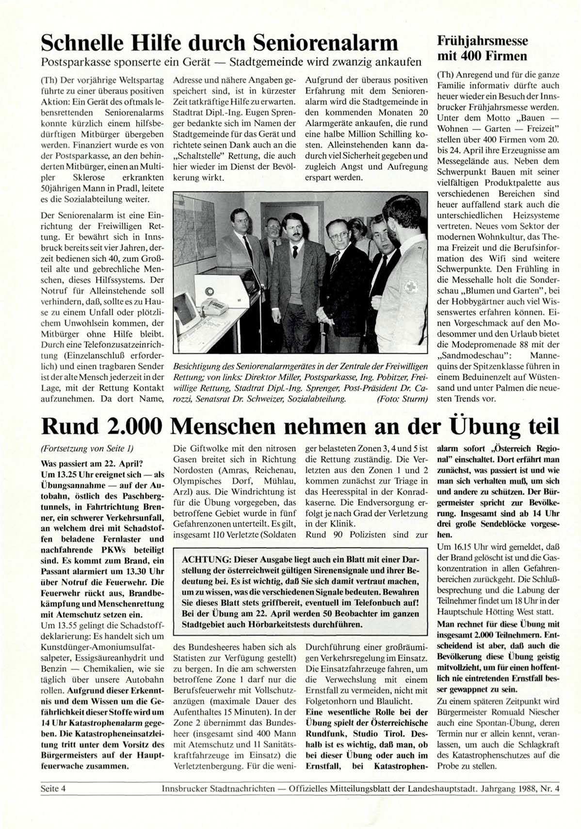 Innsbrucker Stadtnachrichten — Offizielles Mitteilungsblatt der Landeshauptstadt. Jahrgang 1988, Nr. 4
