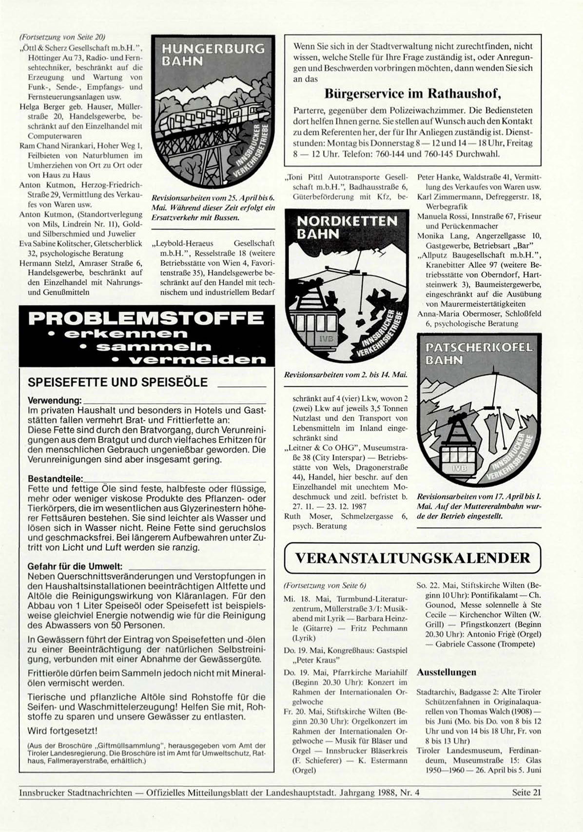 Innsbrucker Stadtnachrichten — Offizielles Mitteilungsblatt der Landeshauptstadt. Jahrgang 1988, Nr. 4