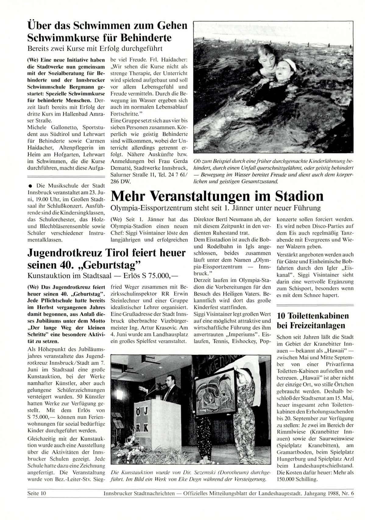 Innsbrucker Stadtnachrichten — Offizielles Mitteilungsblatt der Landeshauptstadt. Jahrgang 1988, Nr. 6