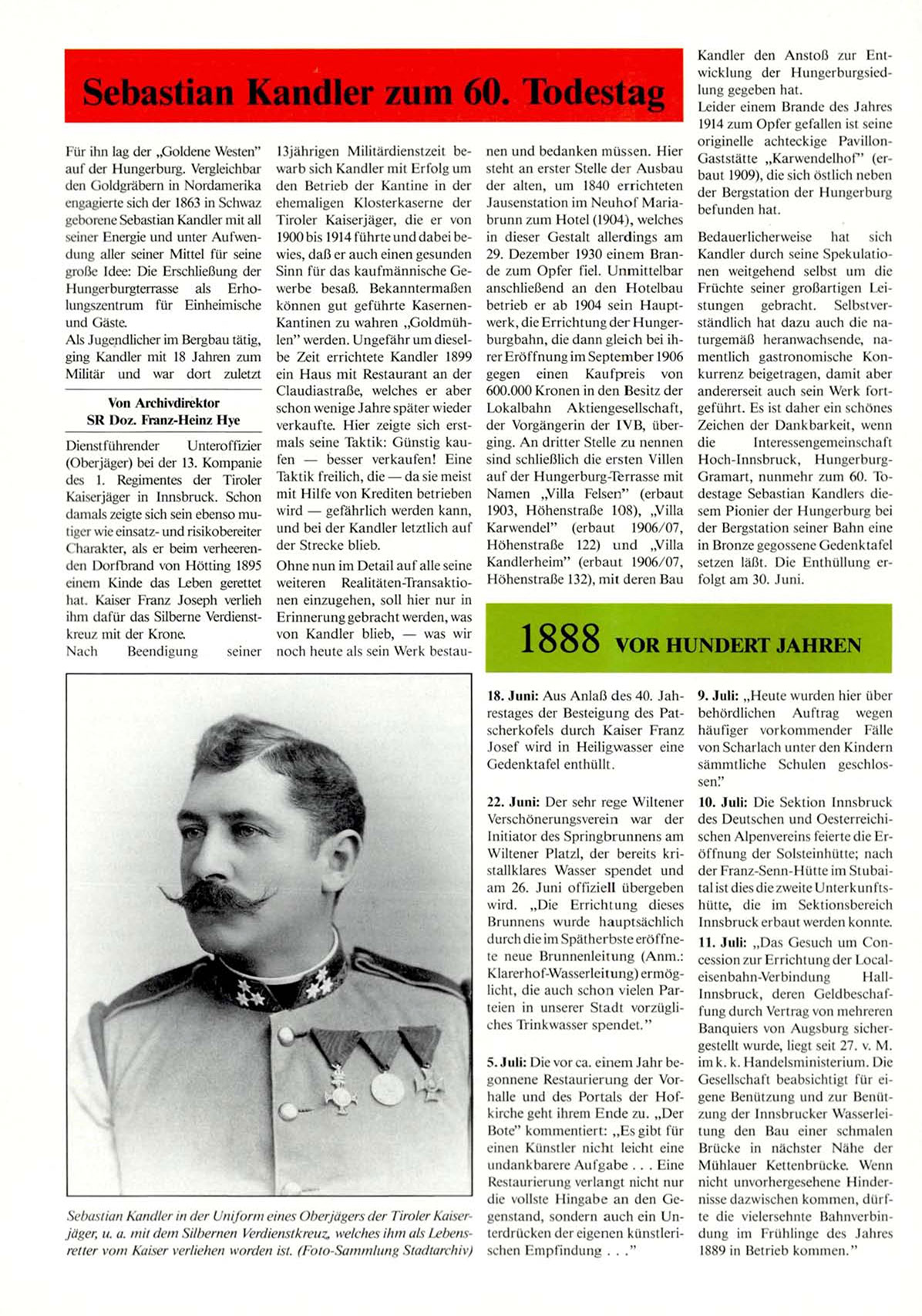 Hoch-Innsbruck, HungerburgGramart, nunmehr zum 60. lödestage Sebastian Kandlers diesem Pionier der Hungerbuig bei