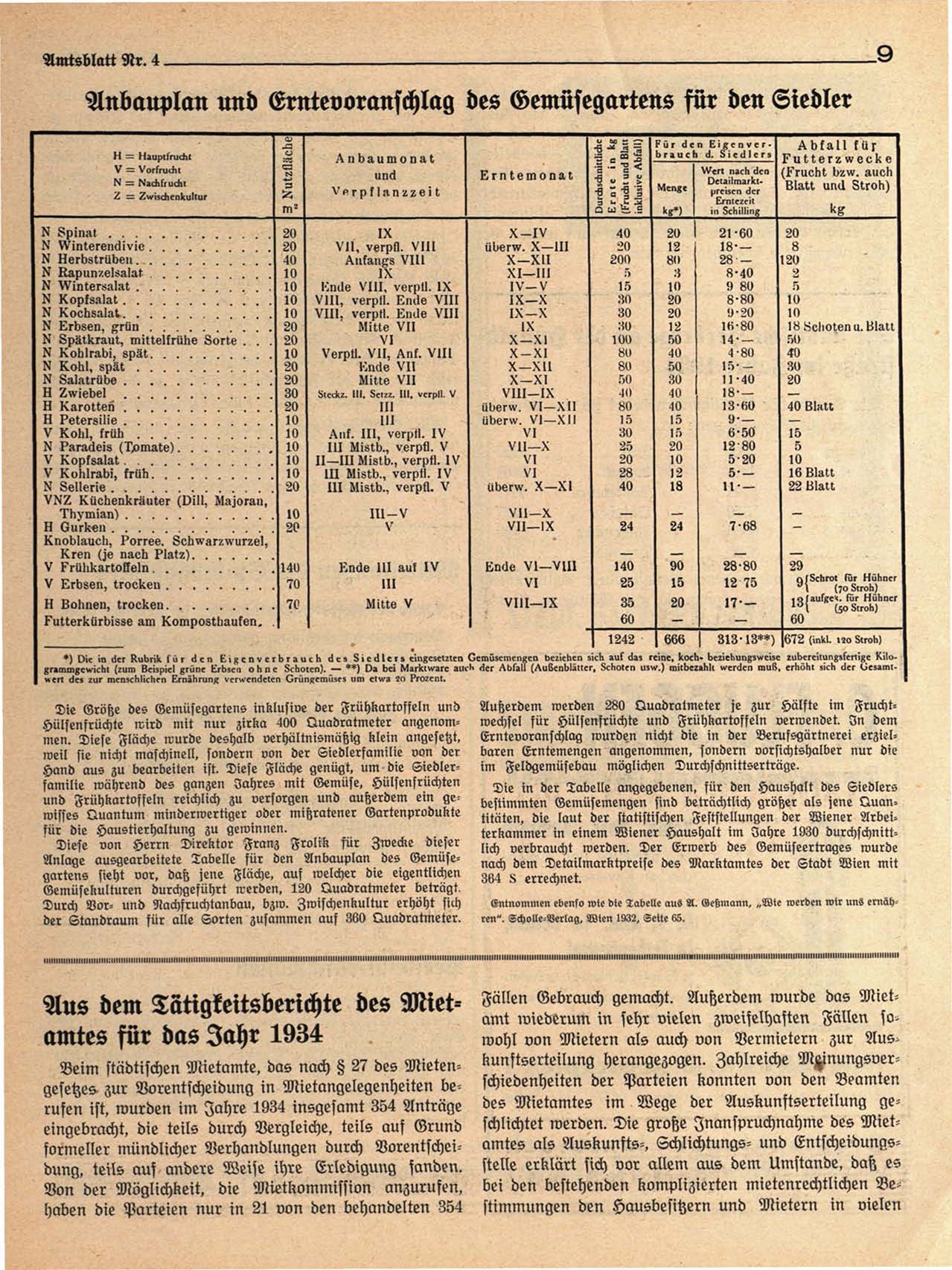 bestimmten Gemüsemengen sind beträchtlich größer als jene Quantitäten, die laut der statistischen Feststellungen der Wiener Arbeiterkammer in einem Wiener Haushalt im Jahre 1930 durchschnittlich verbraucht werden. Der Erwerb des Gemüseertrages wurde