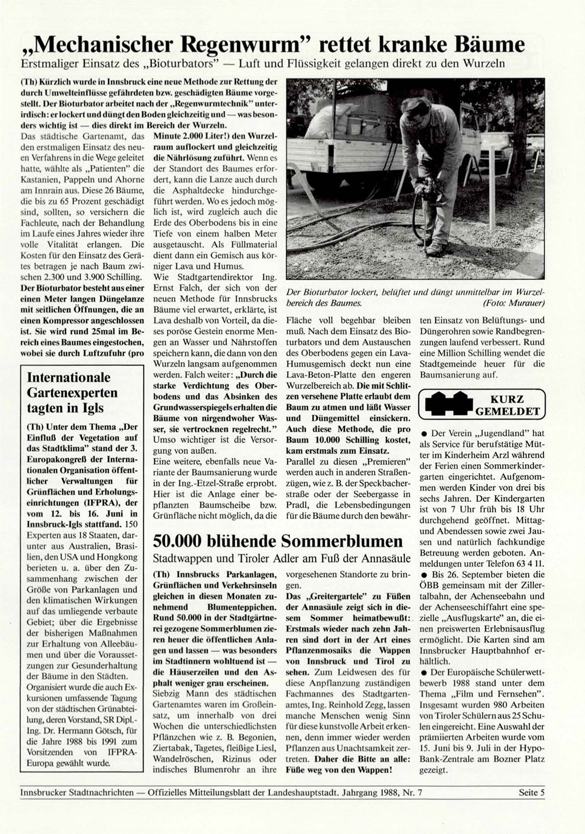 Innsbrucker Stadtnachrichten — Offizielles Mitteilungsblatt der Landeshauptstadt. Jahrgang 1988, Nr. 7