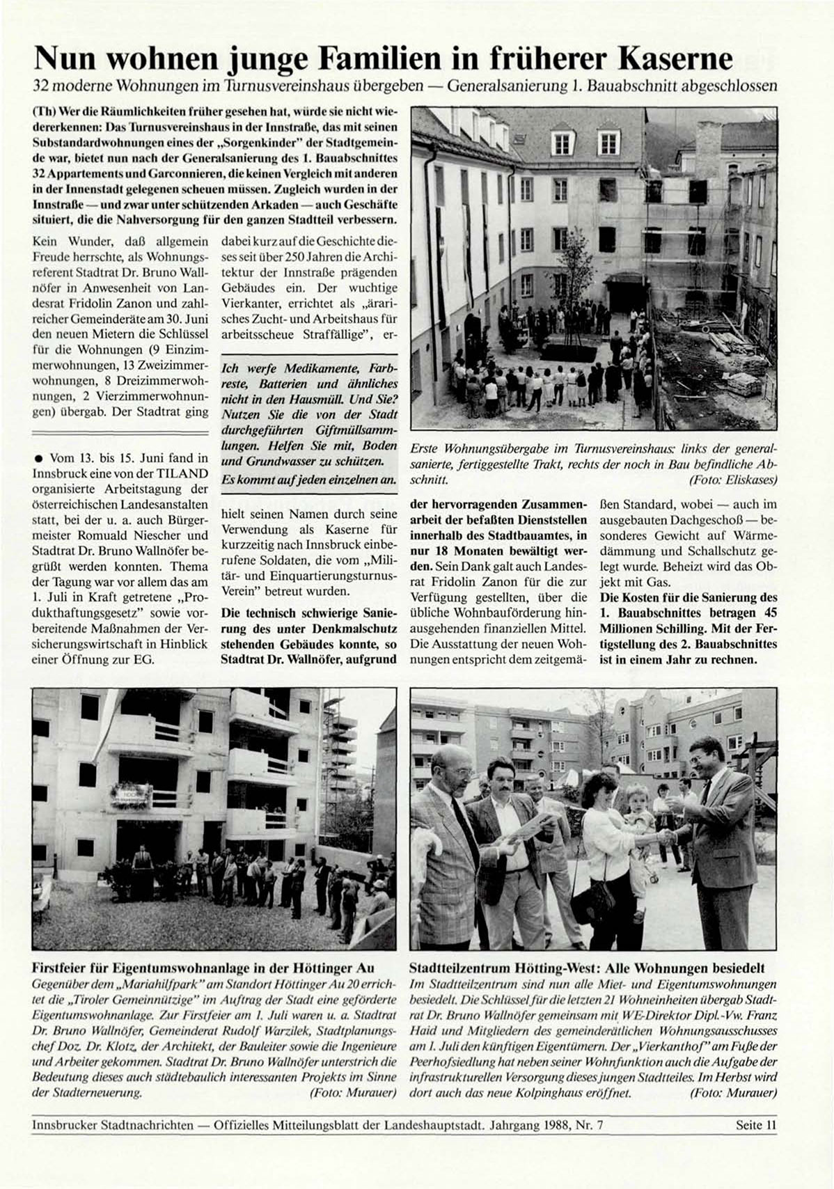 Innsbrucker Stadtnachrichten — Offizielles Mitteilungsblatt der Landeshauptstadt. Jahrgang 1988, Nr. 7