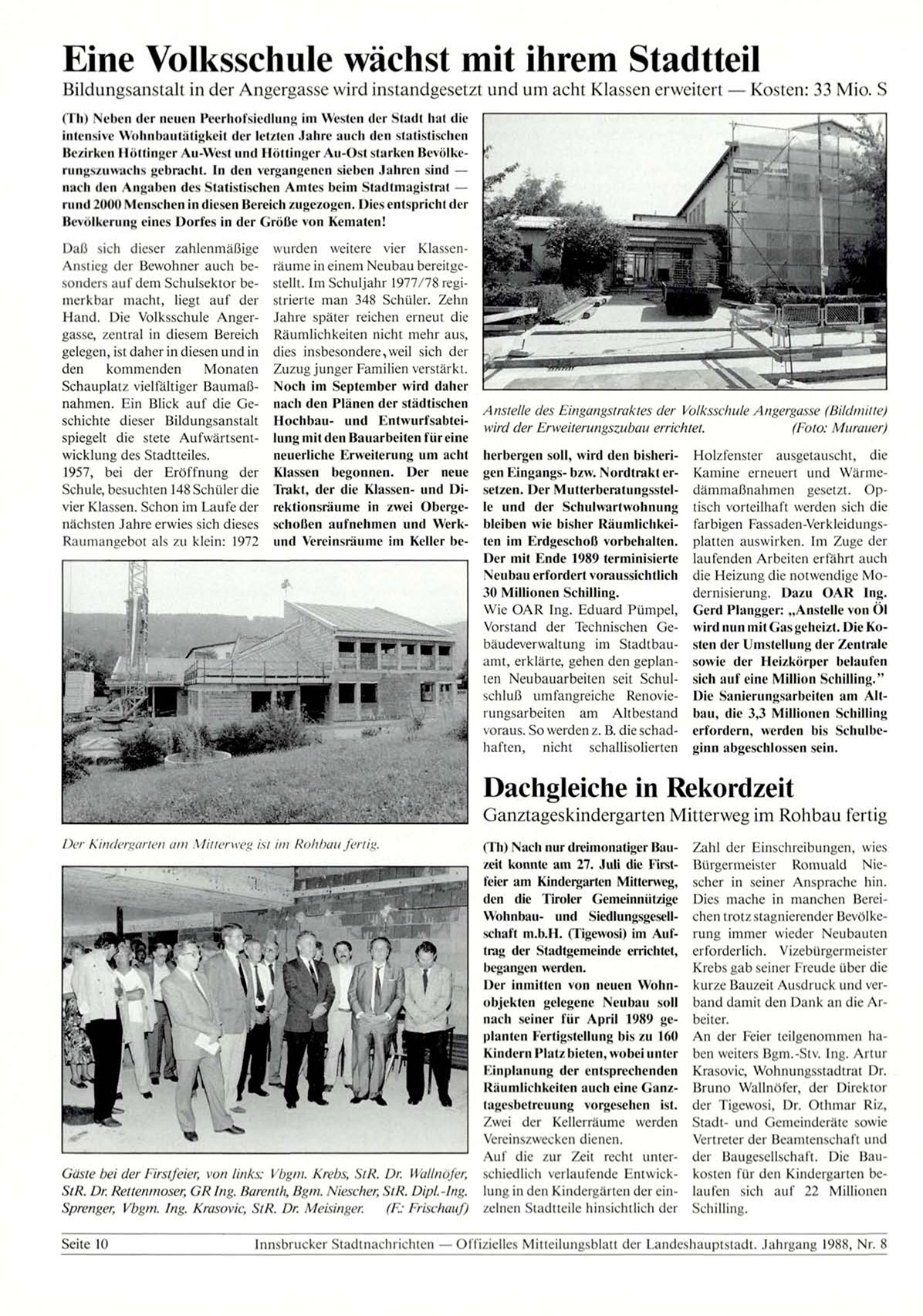 Innsbrucker Stadtnachrichten — Offizielles Mitteilungsblatt der Landeshauptstadt. Jahrgang 1988, Nr. 8