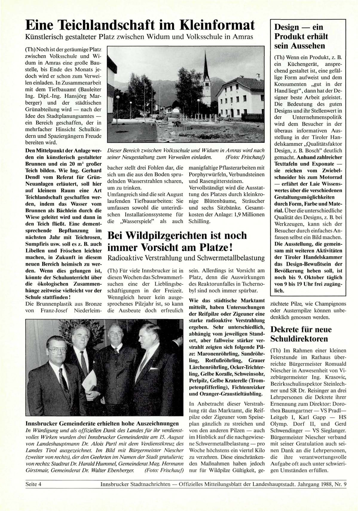 Innsbrucker Stadtnachrichten — Offizielles Mitteilungsblatt der Landeshauptstadt. Jahrgang 1988, Nr. 9