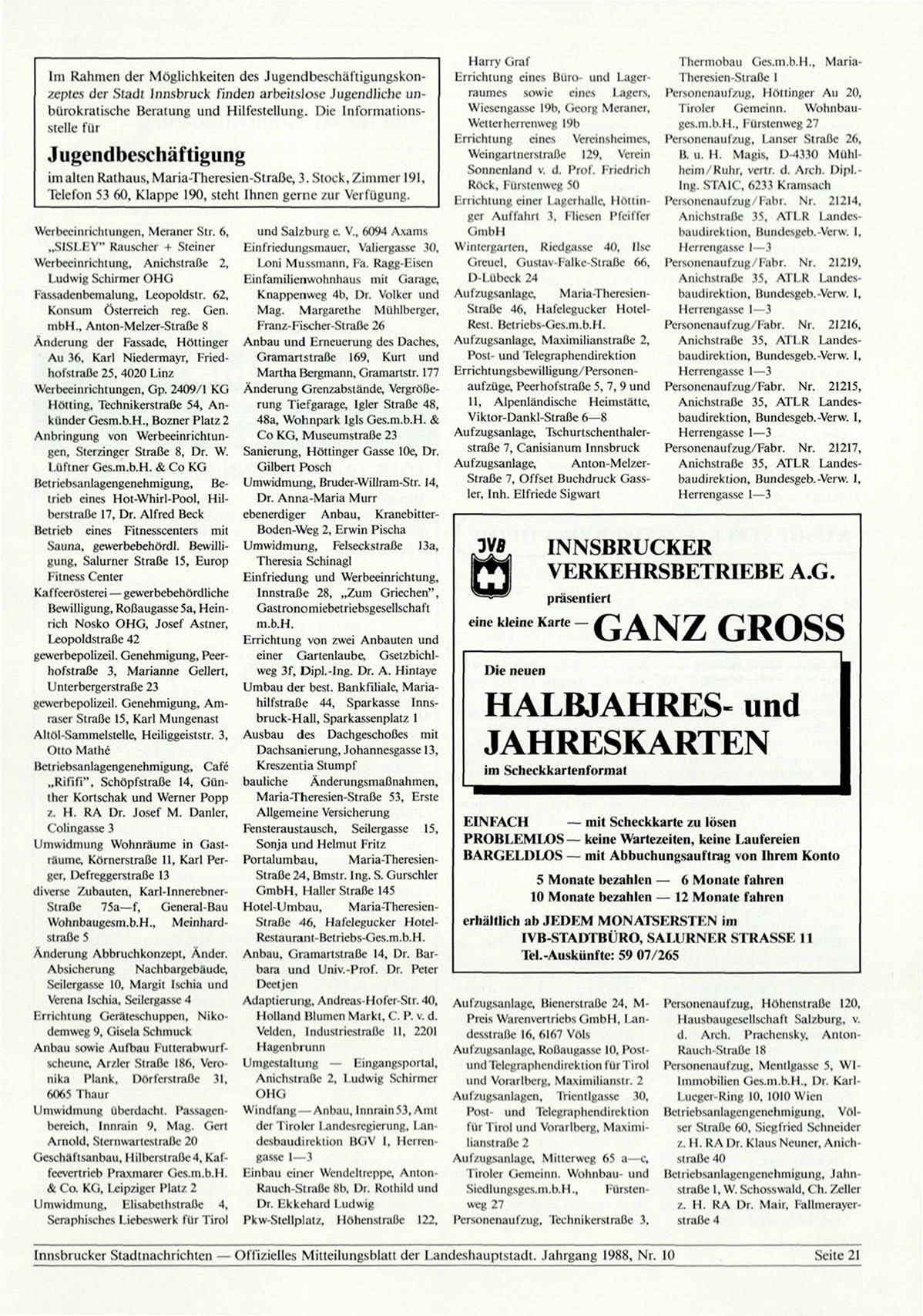 Innsbrucker Stadtnachrichten — Offizielles Mitteilungsblatt der Landeshauptstadt. Jahrgang 1988, Nr. 10